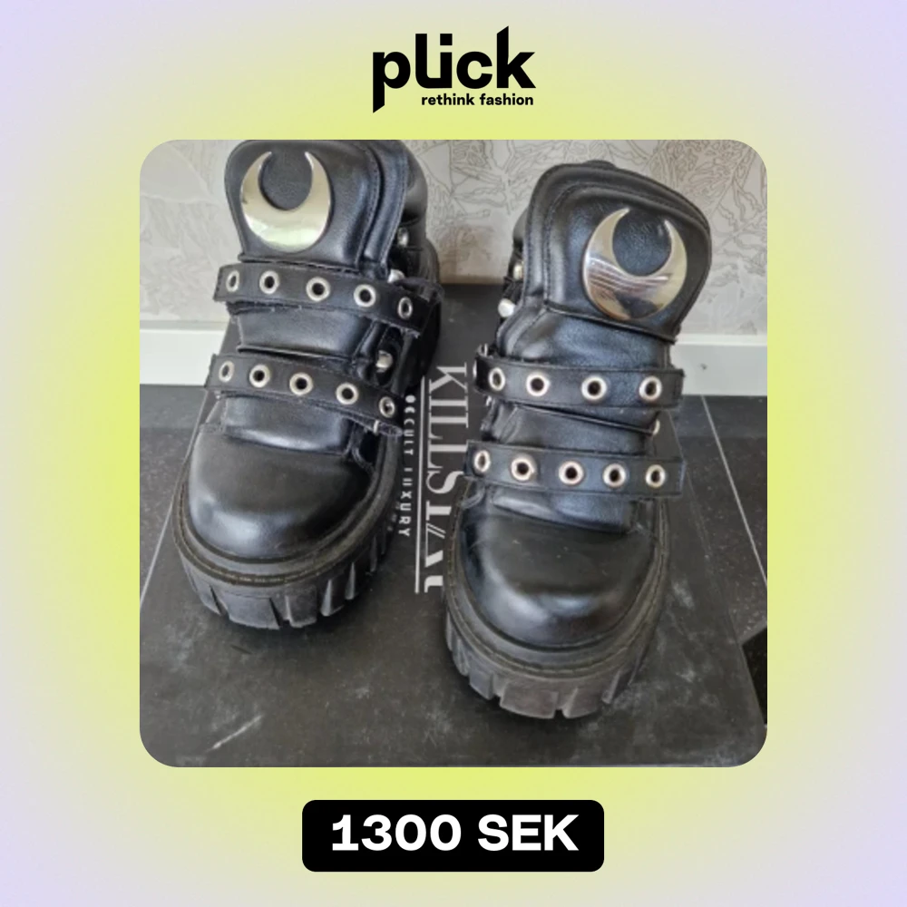 Ett par Killstar Livia platform trainiers. storlek 36 svarta ca6,5 cm hög sula är använda i bruksskick, två hållare till snöre är trasiga se bild. kan skicka mer bilder finns inte att köpa längre. Emo, Killstar, Blue Fox,