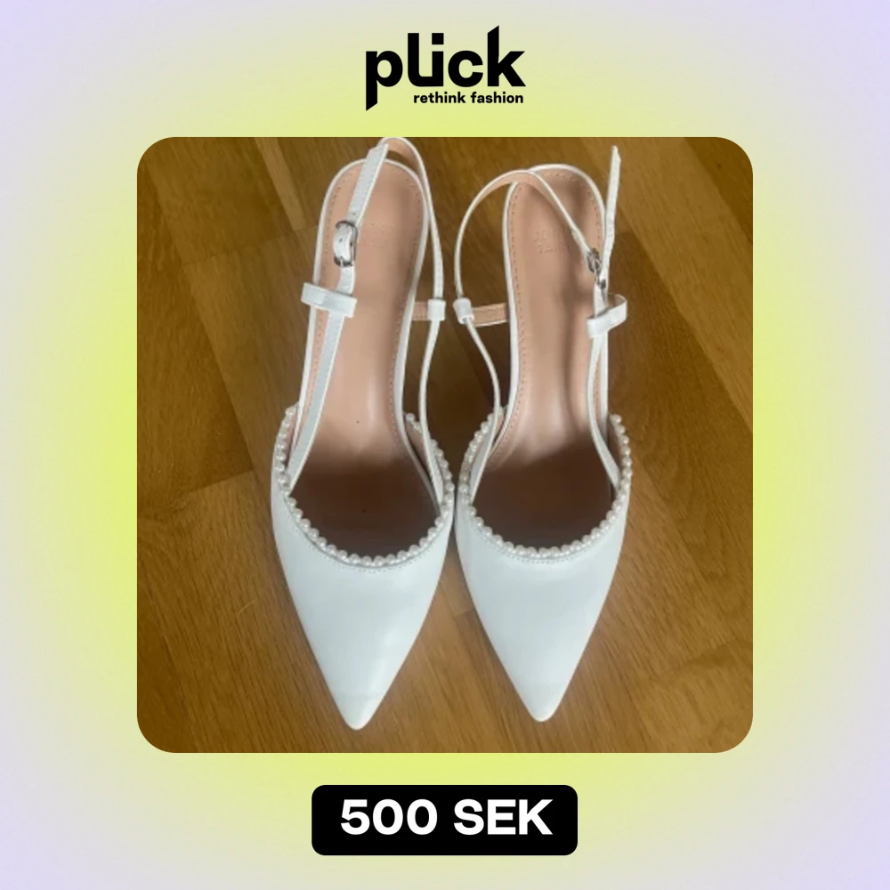 Superfina vita klackskor med pärldetaljer! Perfekta till studenten⭐️❤️använda en gång och i toppenskick, med endast en liten slitning på baksidan av ena klacken. Absolut inget som märks❤️(se sista bilden)