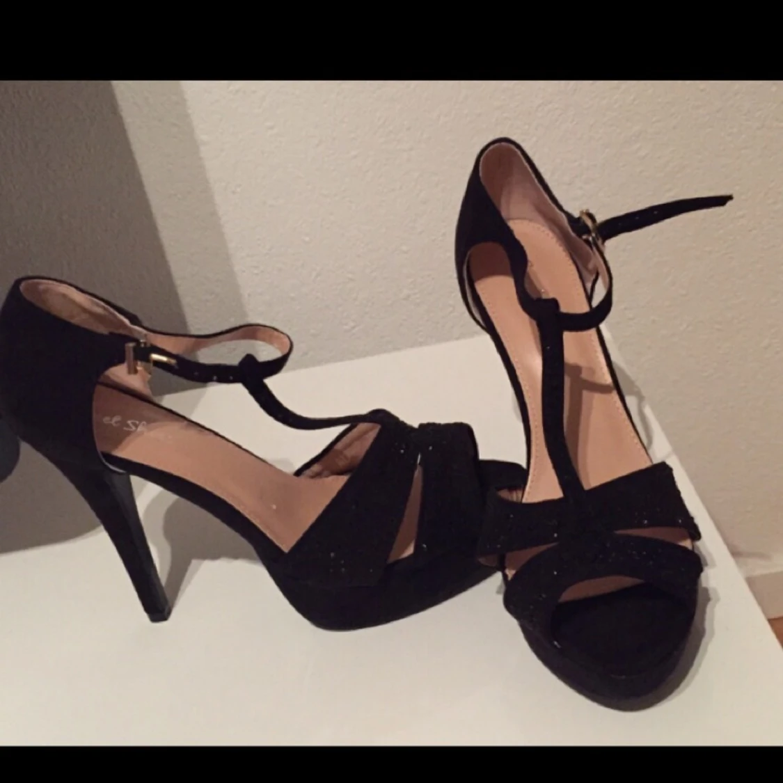 Fina klackskor, med svarta diamanter. 10 cm klack. Aldrig använda! Frakt tillkommer.