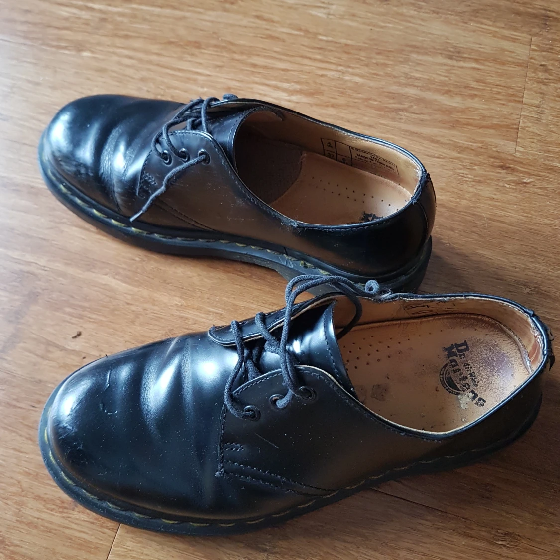 Dr. Martens- kängor i låg modell och gott skick. Ena skosnöret har gått av och är därför kortare. Storlek 37 (US 6). Möts upp i GBG eller fraktar mot betalning.