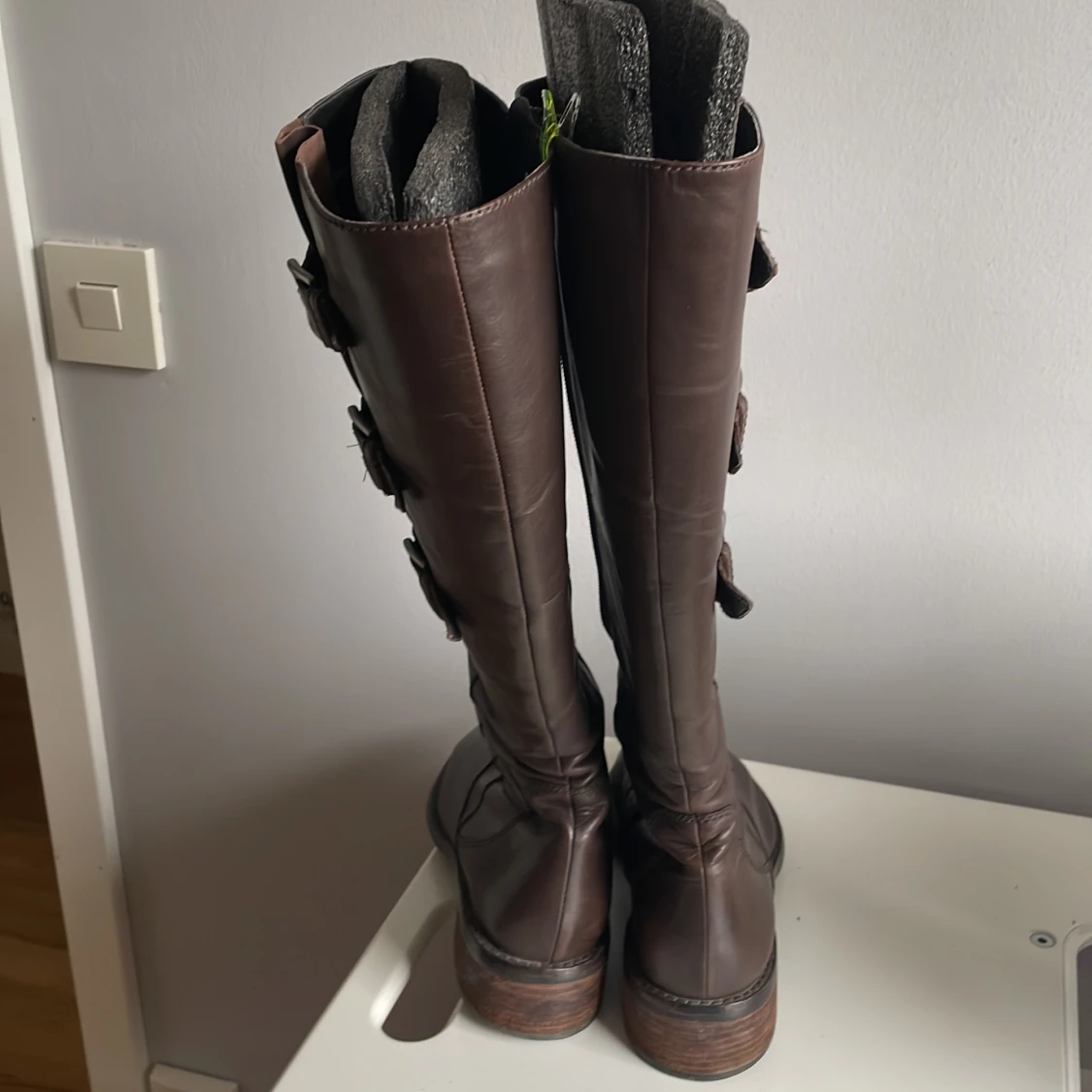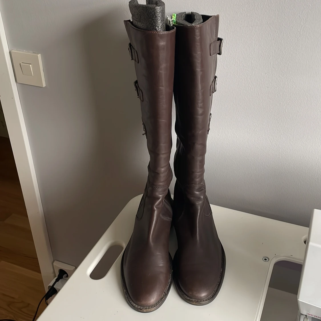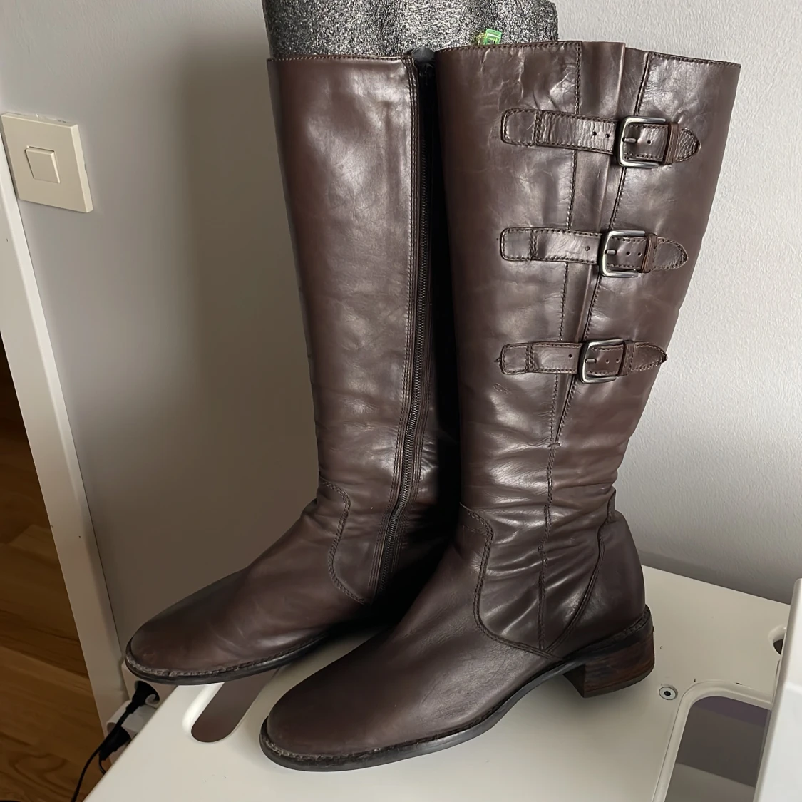 Välvårdade klassiska ofodrade skinnstövlar stl 40. Ställbar storlek i skaftet, Max 43cm i övervidd. Nypris ca 2500kr