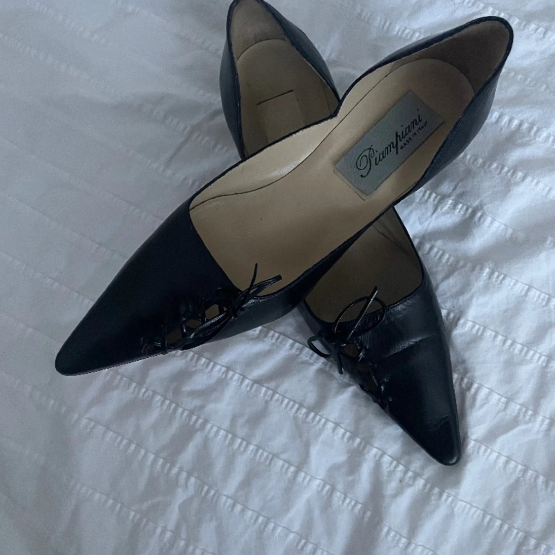 Perfekta svarta klackarna med så fin snörning vid tårna. Lagom spetsiga fram och inte så hög klack!! Säljer då dem tyvärr är för små för mig