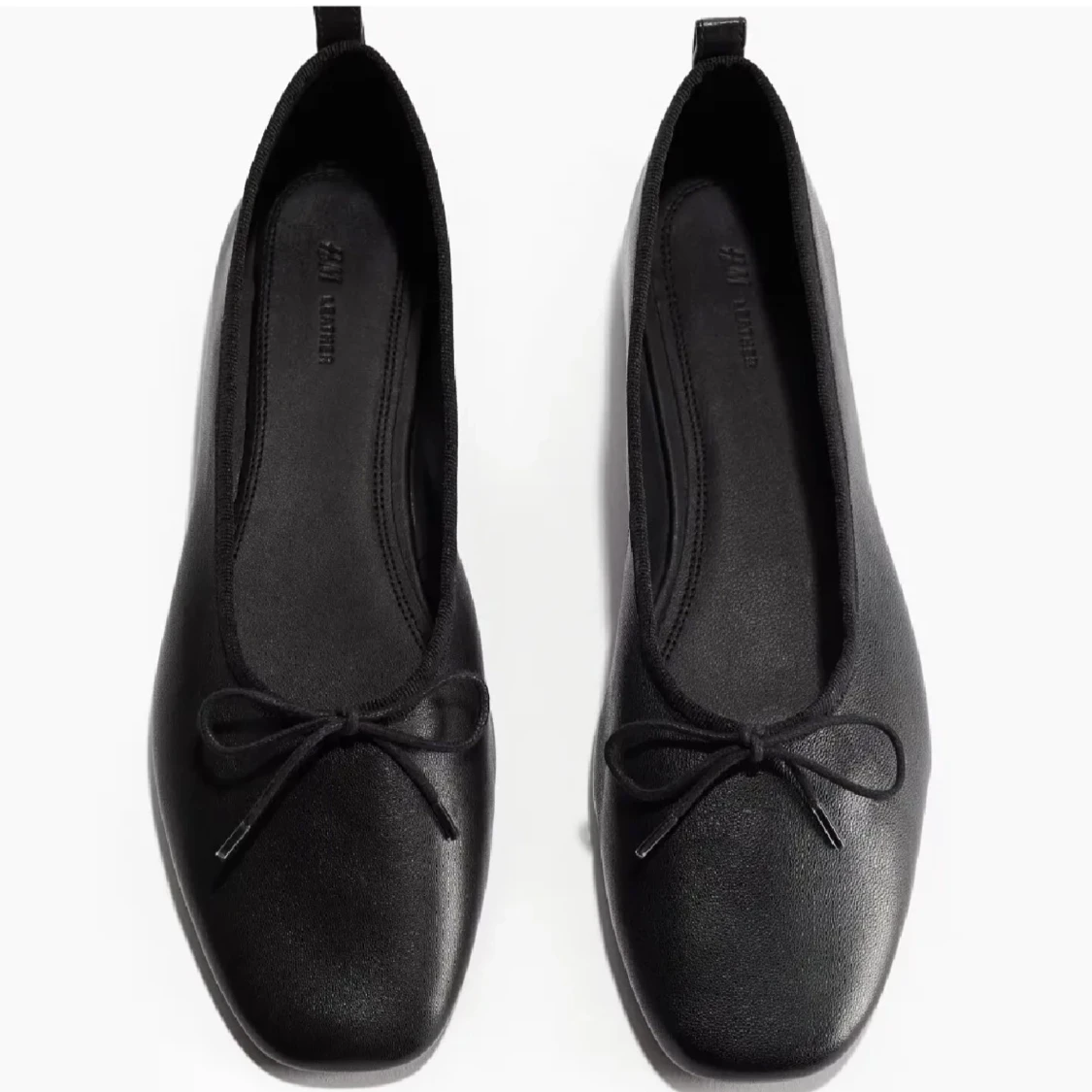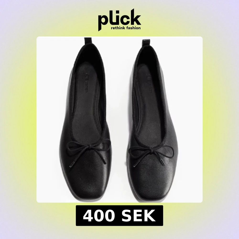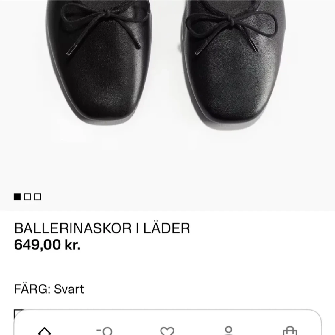 Snygga svarta ballerinaskor från H&M i mjukt läder med rund tå och en söt rosett framtill! Endast använda en gång🤎🤎🤎 passar mig som brukar bära 38-39. Köpa för 649!