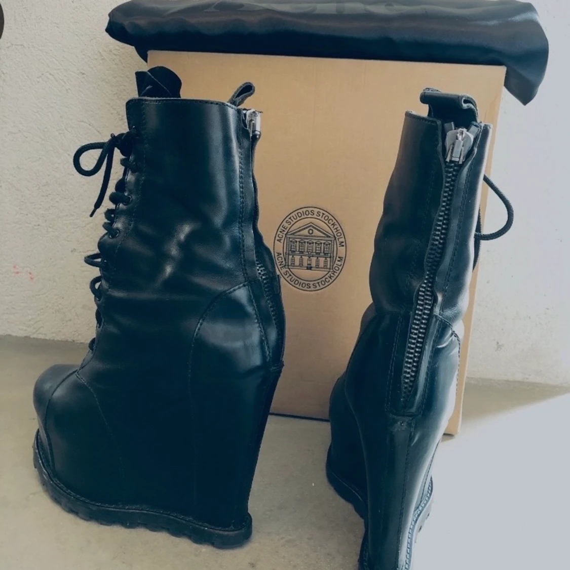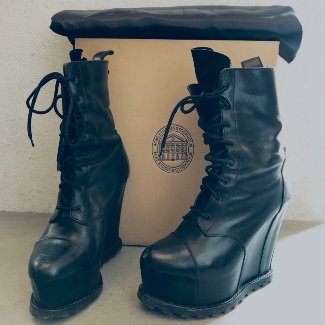 Acne boots i storlek 39, så jävla fina men tyvärr var dem försmå för mig jag har själv storlek 40. Köpa på tradera i väldigt bra skick.