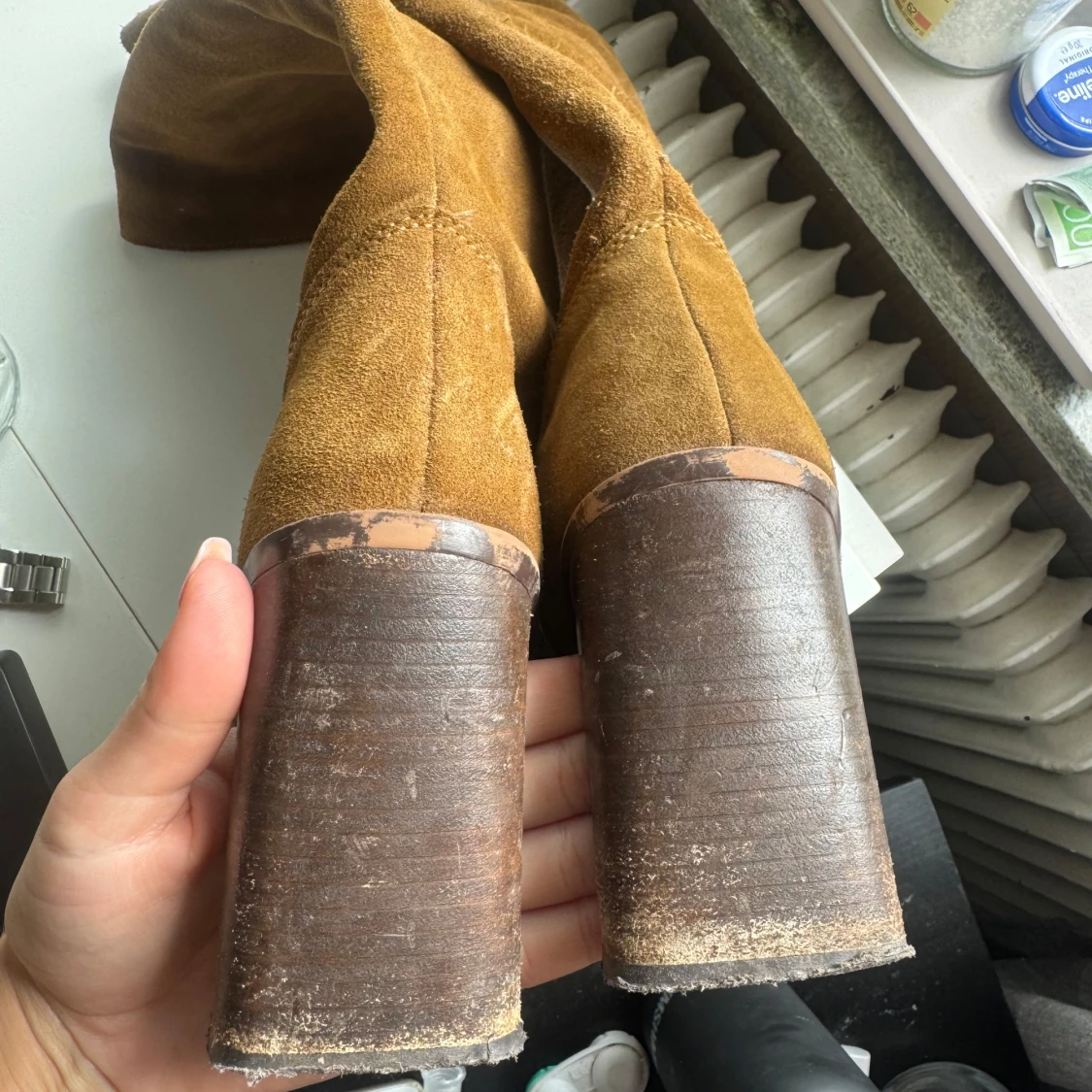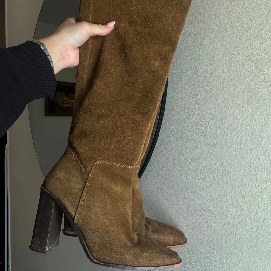 Läder stövlar från Mango. Riktigt fina och använt sparsamt men har missfärgningar på tåspetsen pga regn, detta går att punktbehandla men inget jag tagit tag i✨ Nypris 1199kr, slutsålda överallt! 700kr eller prisförslag❤️ Storlek 37 och 8cm klack. Går precis under knäna på mig💕💕