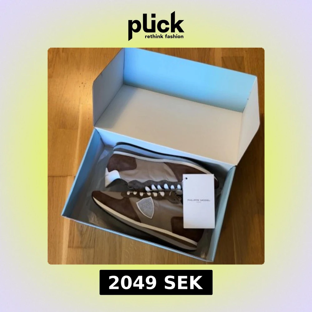 Snygga sneakers från Philippe Model i en stilren kombination av beige och brunt. Skorna har en rund tå och snörning framtill. Tillverkade i mocka och skinn, vilket ger en lyxig känsla. Perfekta för en avslappnad men trendig look. Helt nya! Nypris 2800kr
