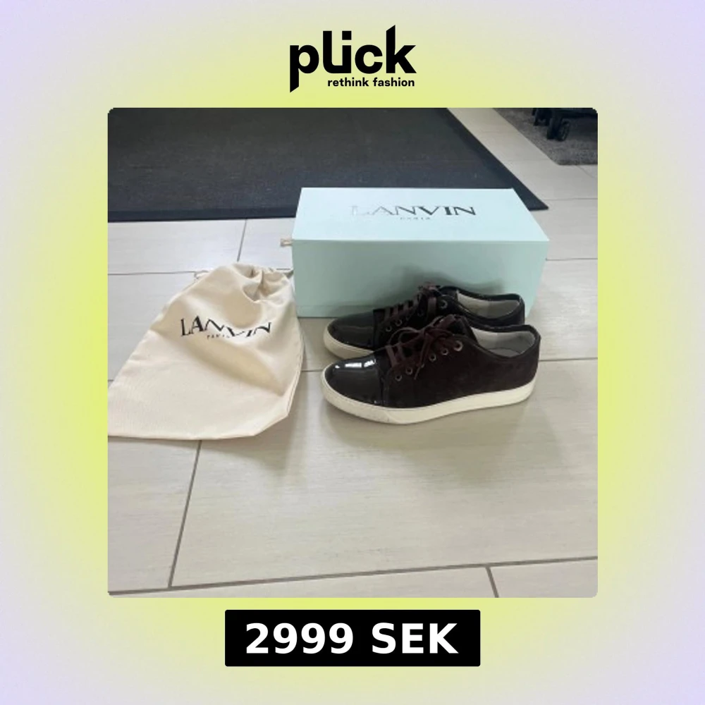 Bruna sneakers från Lanvin med ovandel i mocka och lackad tå. . Kommer med originalbox och dustbag. Använda fåtal gånger. UK 6