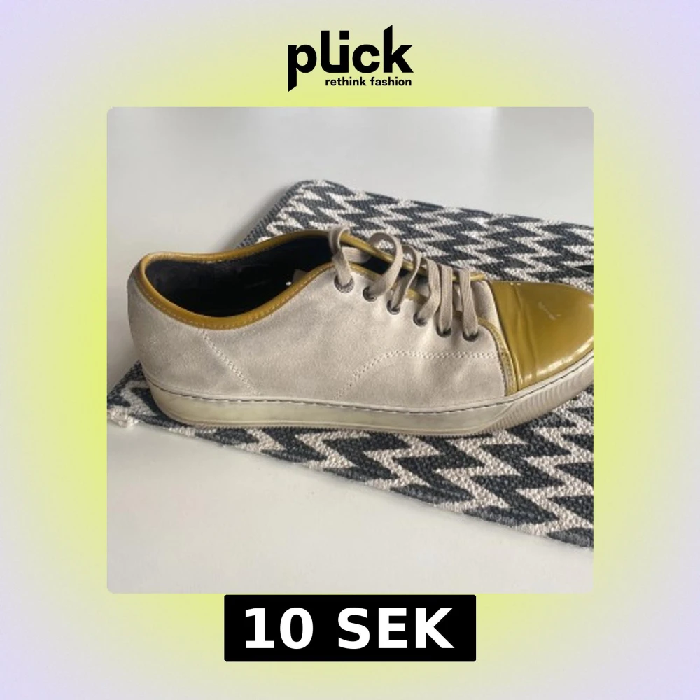 Snygga beige sneakers från Lanvin med gulddetaljer och snörning. Skorna har en rund tå och en stilren design som passar perfekt för en trendig look.