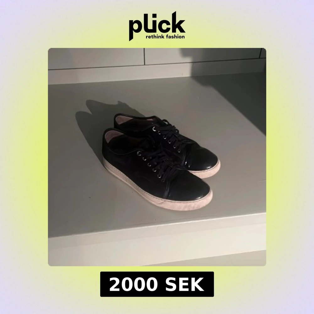 Snygga svarta sneakers från Lanvin med vit sula och klassisk snörning. Perfekta för en stilren look. Pris kan diskuteras😊.Låda och påse ingår.
