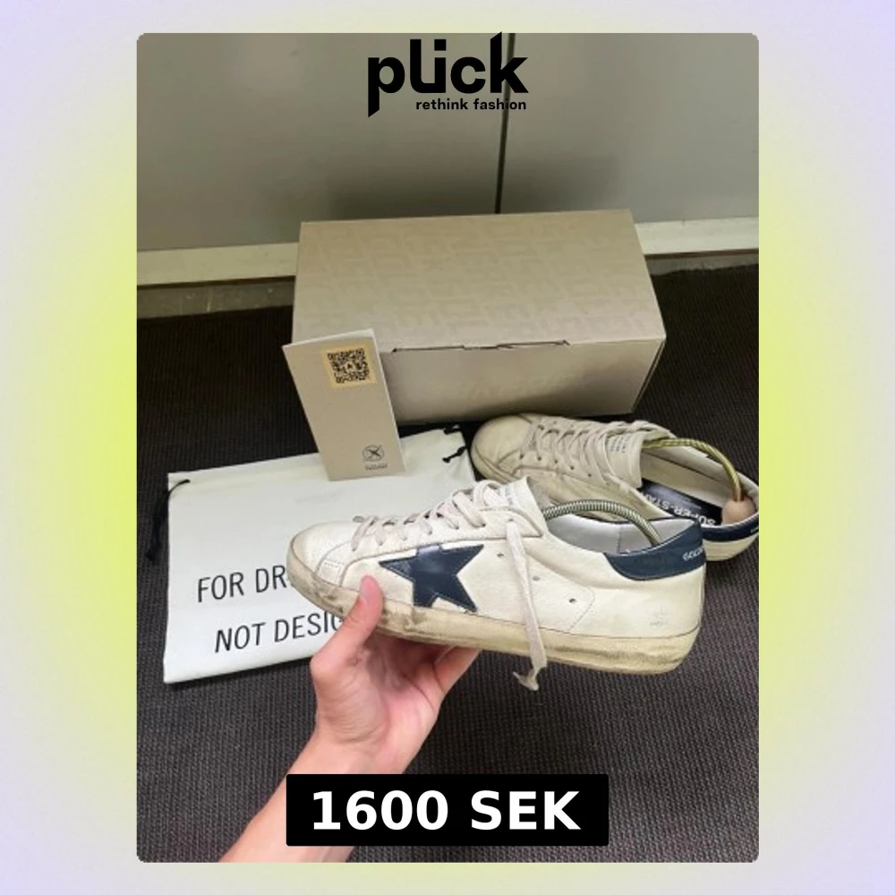 Snygga golden goose skor i färgen navy/white. Köptes nya på miinto för 4800kr. Säljer de nu för 1599kr. Allt og+ kvitto medkommer vid köp. Finns slitningar på hälen. Storlek 40 men passar som 41.