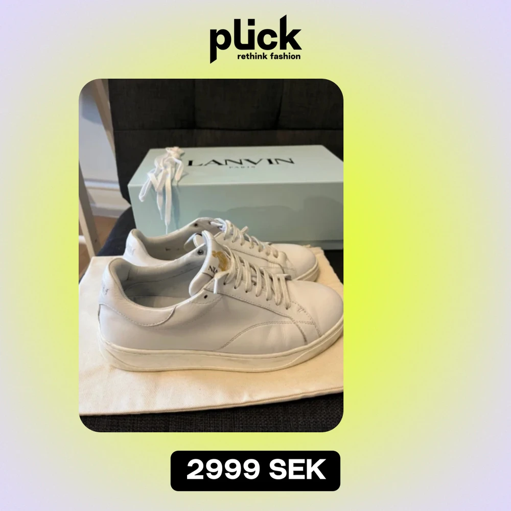 Vita sneakers från Lanvin. Läder. Storlek 43 Extra snören, skopåse och box skickas med. Nypris 4999kr Mitt pris 2999kr Köptes hösten 2023 och användes under hösten ej använt under vintern. Bra skick och kvalite.