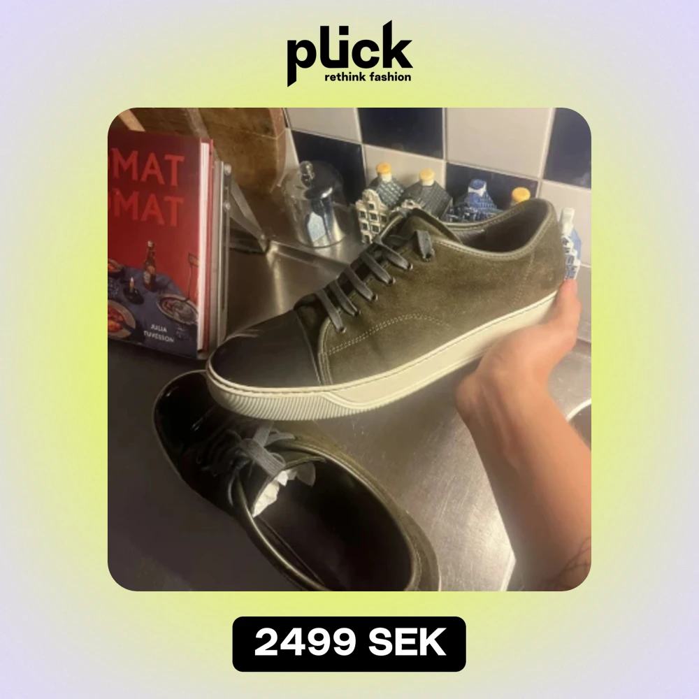 Säljer nu mina stört feta lanvins i storlek uk 10 dvs 44.5/45 mörkgrön/mörkbrun khaki färg med alla og tillbehör box dustbags extra snören osv passar till nästan vad som helst skynda fynda ett par sköna dojjor tecken tecken av användning finns