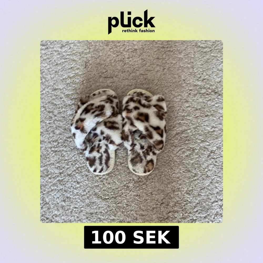 Mysiga tofflor med leopardmönster i mjukt pälsmaterial. Perfekta för att hålla fötterna varma och bekväma hemma.