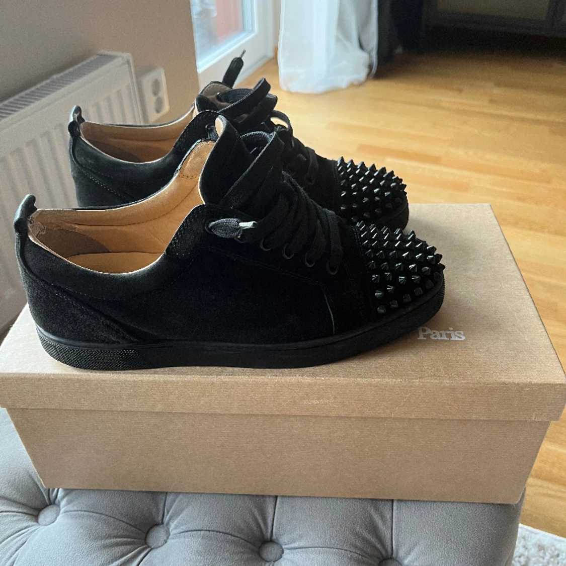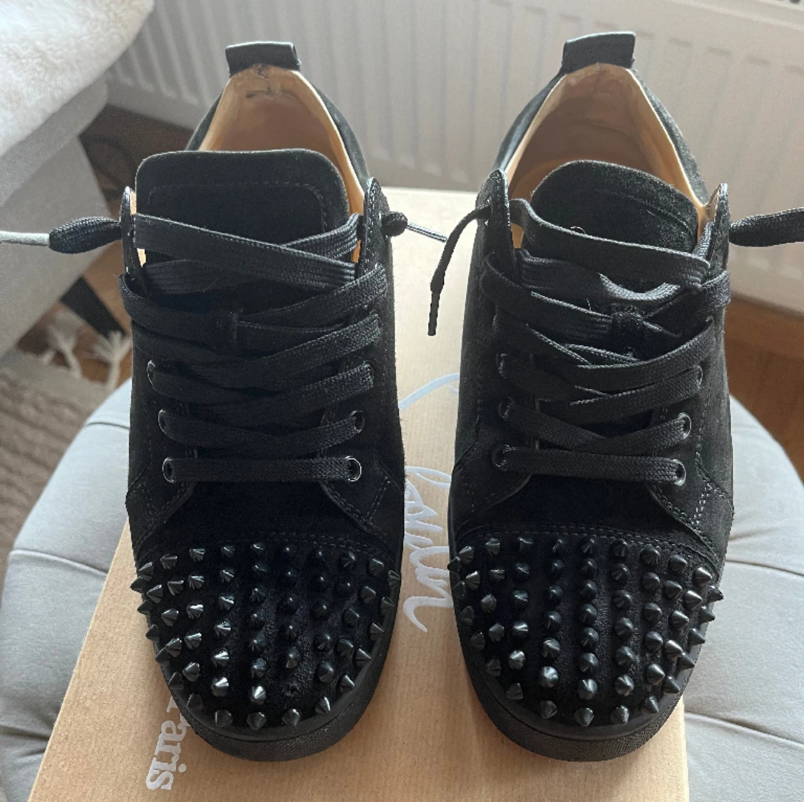 Svarta junior spike Använda i gott skick skulle säga ett overall betyg på 7 Använder dem inte för dem är för små. En nit saknas på höger sko (syns inte när man använder dem) Dem är i storlek 40 men passar 41. Billigare vid snabb affär.