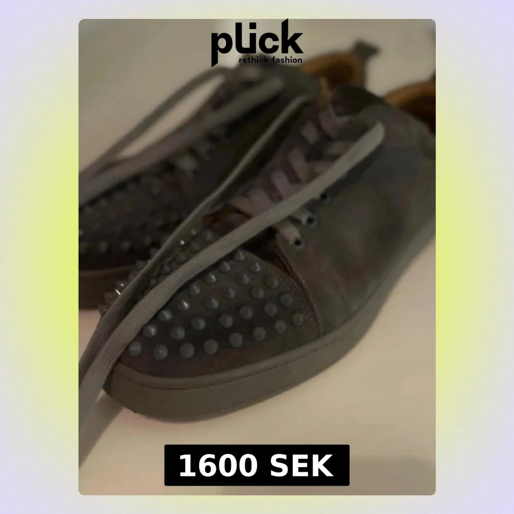 44/43Svarta sneakers från Christian Louboutin med ikoniska röda sulor och coola nitar på tån. Skorna har snörning och är gjorda i mocka med insida i brunt skinn. Perfekt för dig som vill sticka ut med en lyxig och edgy stil.