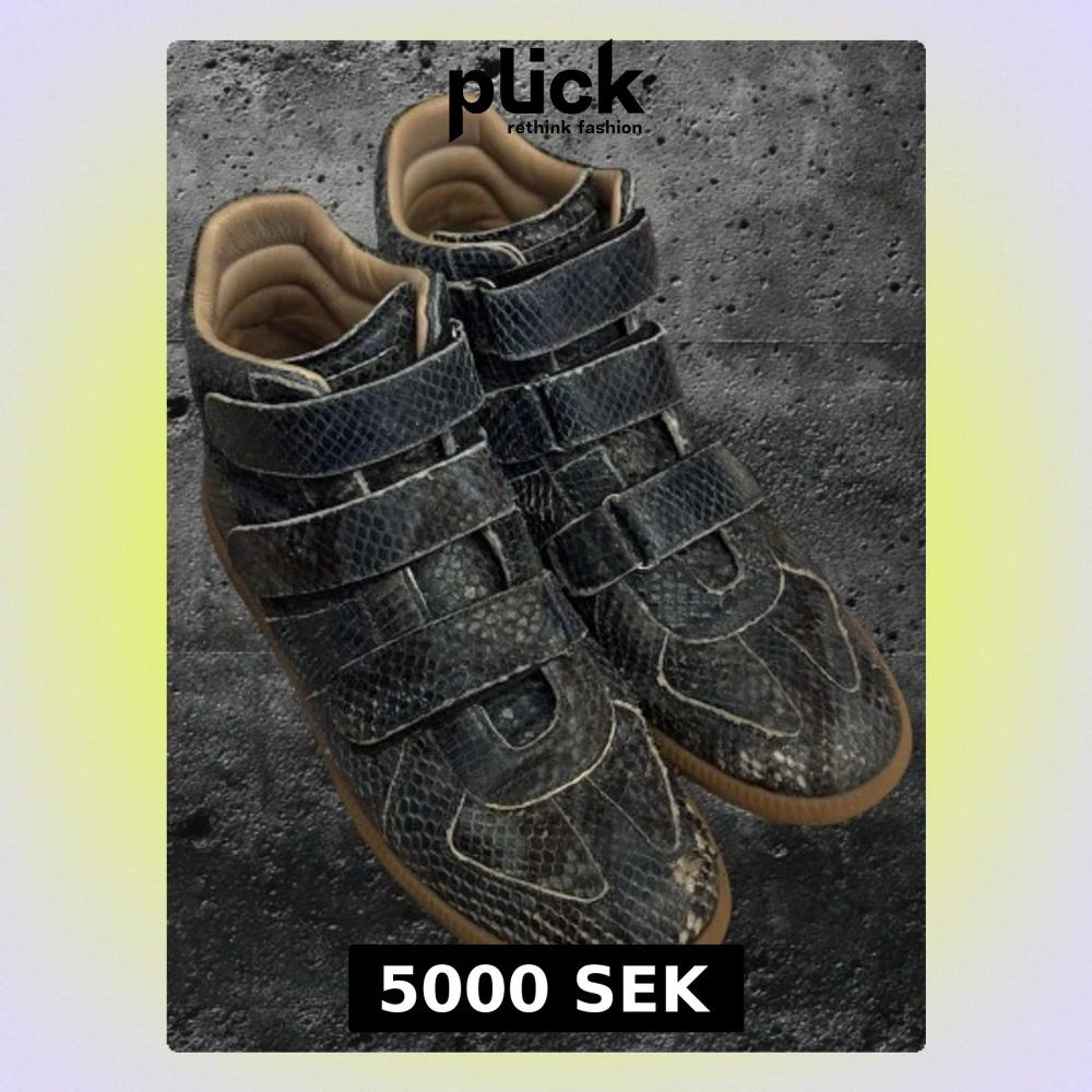 Beautiful pair of high-top velcro GATs in python/alligator-style leather. This pair is from around 2009–2013, which is why there is no Margiela logo on the outsole. Really good condition for their age. Small flaws on one toe box and on the back of the shoe, shown in pictures. Not super interested in selling, so feel free to send reasonable offers. Size: 40 (fits slightly bigger, closer to a 41. Without the insole it can fit a 42, which is my usual size.)