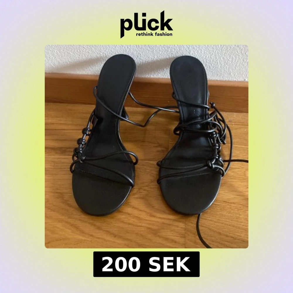 Snygga svarta sandaletter från Mango med tunna remmar och snörning runt foten. Skorna har öppen tå, låg klack och stilren design i syntetmaterial. Perfekta för att lyfta din outfit med en trendig touch.
