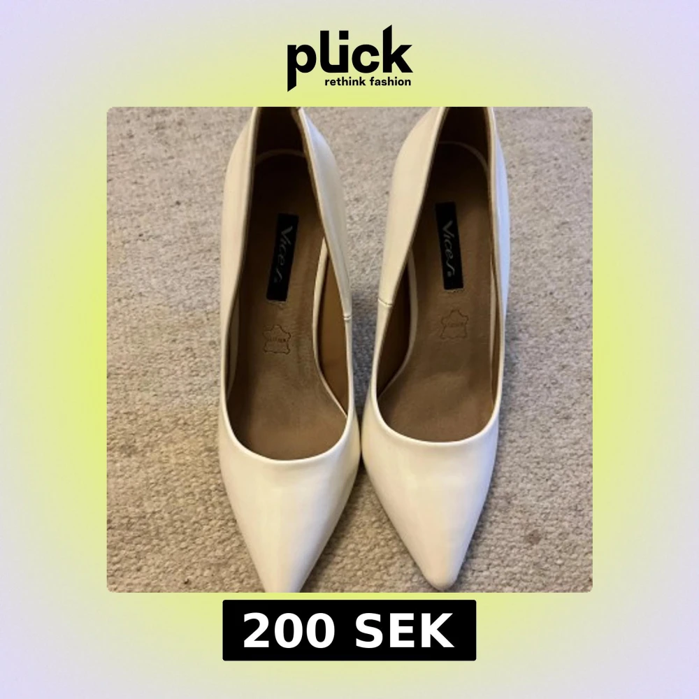 Stilrena vita pumps från Vices i lack material med spetsig tå och smal hög klack. Klassisk och elegant modell som lyfter vilken outfit som helst. Perfekta för dig som gillar en clean och chic look.