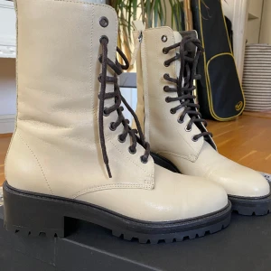 Helt nya boots, storlek 38. Aldrig använda och köpts för cirka 1400-1600. De finns att hämta i Majorna, Mariaplan, centrum eller kan fraktas mot avgift. Färg offwite/ ljus beige. Inga fläckar eller annan typ av defekt.