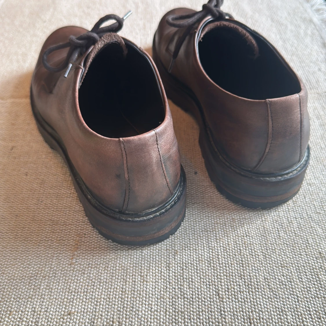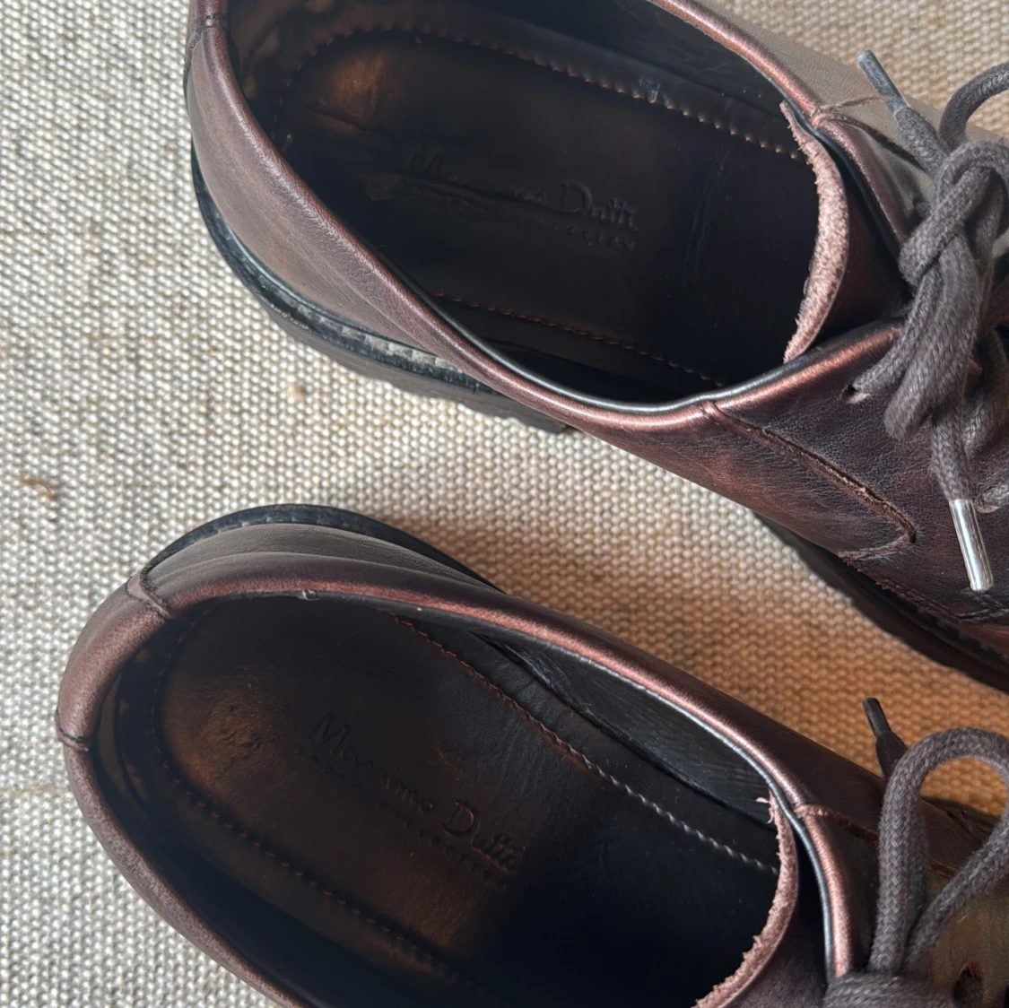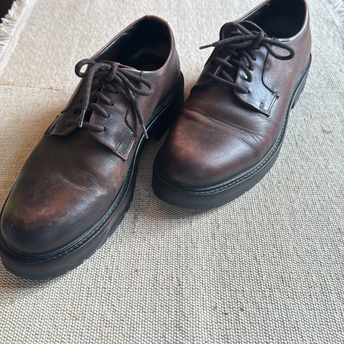 Chunky bruna skinnskor från Massimo Dutti med rund tå och kraftig sula. Klassisk snörning och stilren design som passar till både jeans och kostymbyxor. Skorna har en mörkbrun ton och är tillverkade i äkta skinn.