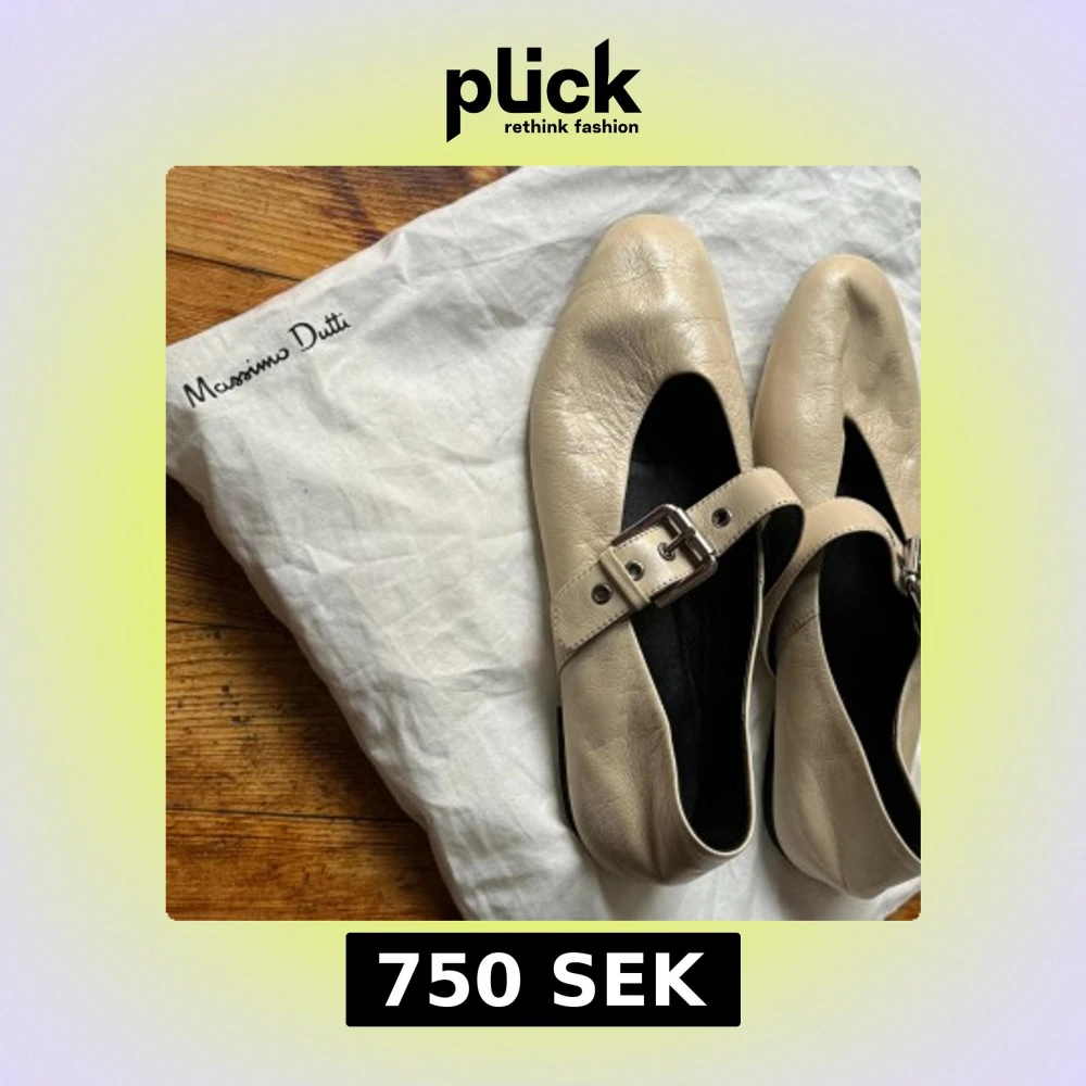 Stilrena beige ballerinaskor från Massimo Dutti med en elegant spänndetalj över foten. Skorna är tillverkade i skinn och har en rundad tå. Har aldrig används bara fraktats från London. Helt nya från höstens kollektion. Storlek 39