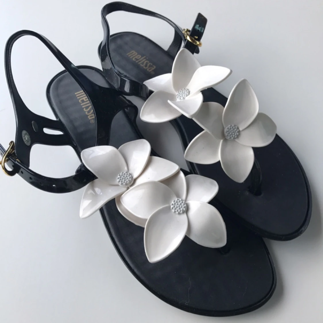Flip flops Melissa black&white solar Hawaii, oanvända. Storlek UK 3 (36). Köparen står för frakt