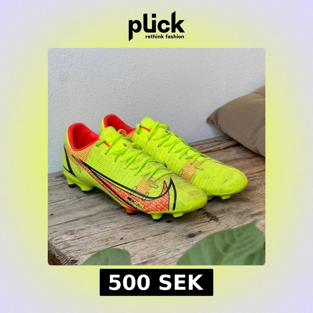 Nike Mercurial fotbollsskor i neon-gul med röda och svarta detaljer. Insidan är röd och yttersulan har svarta och röda dobbar för grymt grepp på planen. Perfekta för dig som vill sticka ut på matchen! Ag/Fg dobbar. Inga slitningar alls bara lite smutsiga! Sänker pris vid snabb affär.