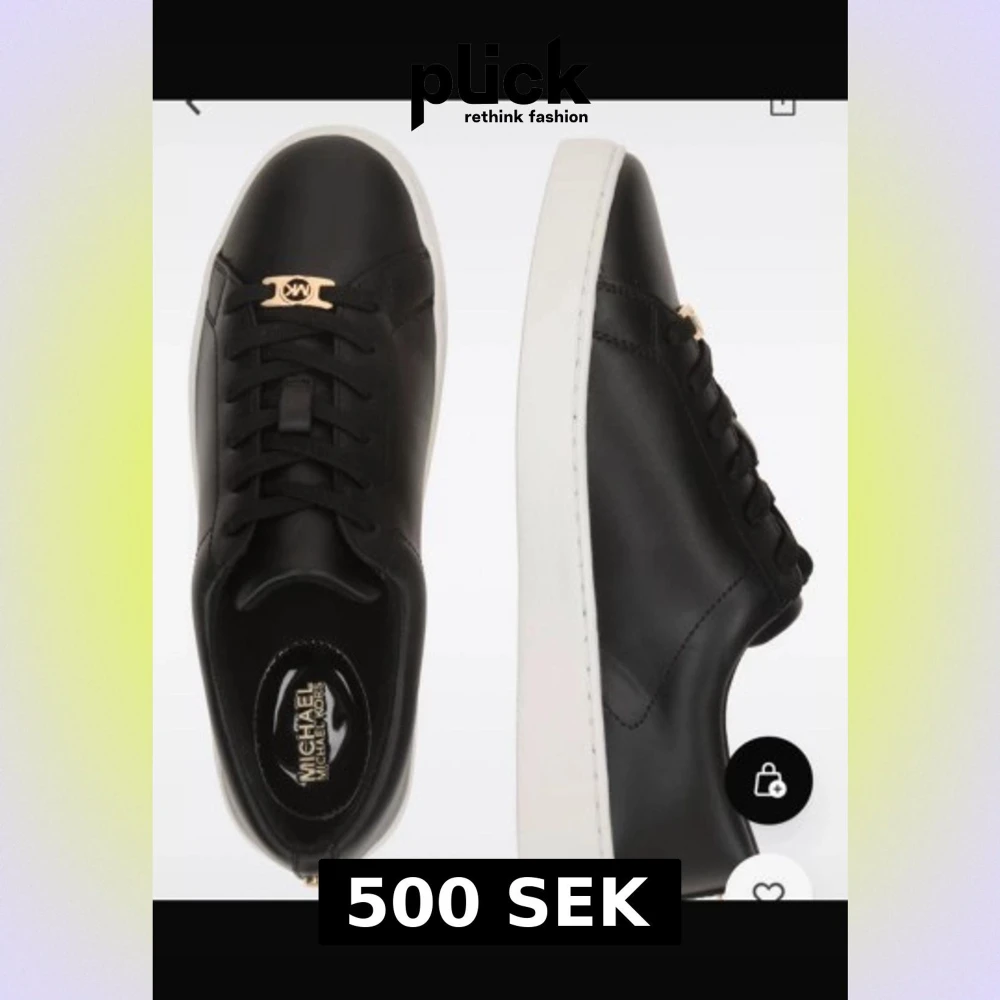 Snygga svarta sneakers från Michael Kors med vit platt sula och guldfärgad MK-detalj vid snörningen. Skorna har rund tå och är tillverkade i slätt skinn med klassisk snörning. Perfekta för dig som gillar stilrena och trendiga skor.