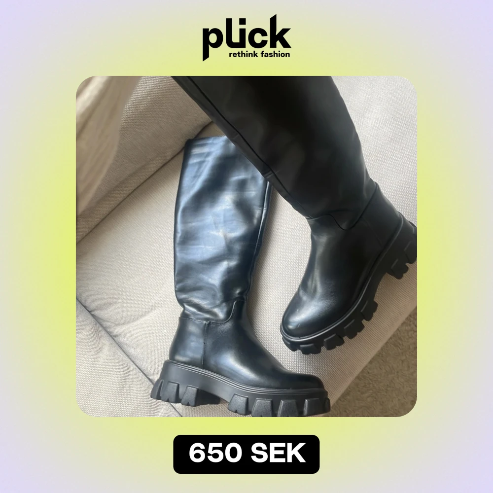 Knappt använda snygga svarta stövlar i skinn. Perfekta för höst och vinter. De populära bootsen har en design som passar till många olika outfits.