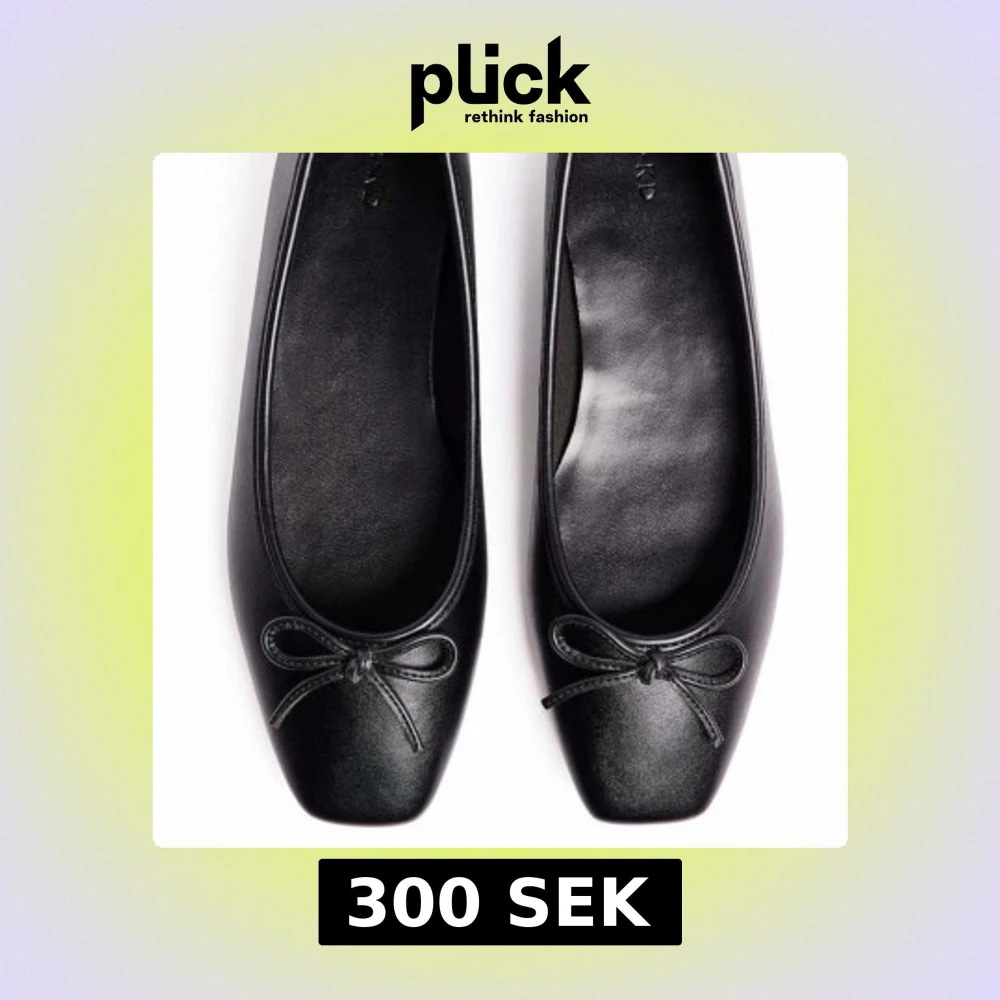 Snygga svarta (slutsålda) ballerinaskor från NA-KD med fyrkantig tå och en liten rosett framtill. Endast använda 1 gång🤍Köpta för 500