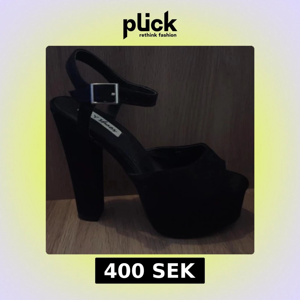 Snygga svarta klackar med hög klack och justerbar rem runt ankeln. Perfekta för att ge lite extra höjd och stil till din outfit. Klacken är stabil och ger bra stöd. Aldrig andvända. Storlek 36 med 13cm klack.
