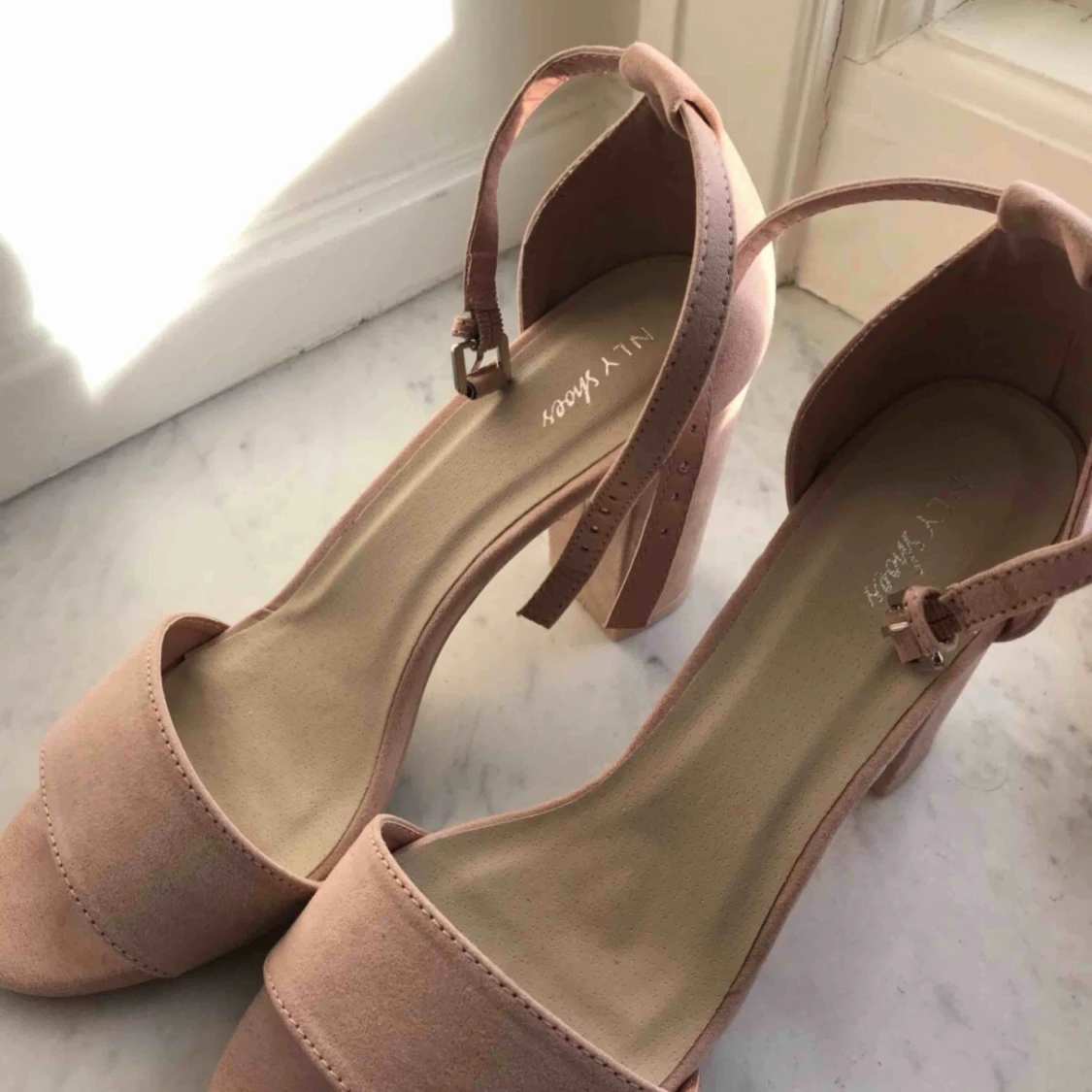 Klackar från Nelly.com, helt oanvända. Endast testade, säljer pga ingen användning Storlek 39, ljusrosa i färgen Kunden står för frakten