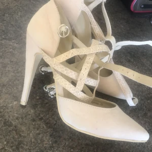 Beige klackar från Nelly i storlek 37, använda en gång.