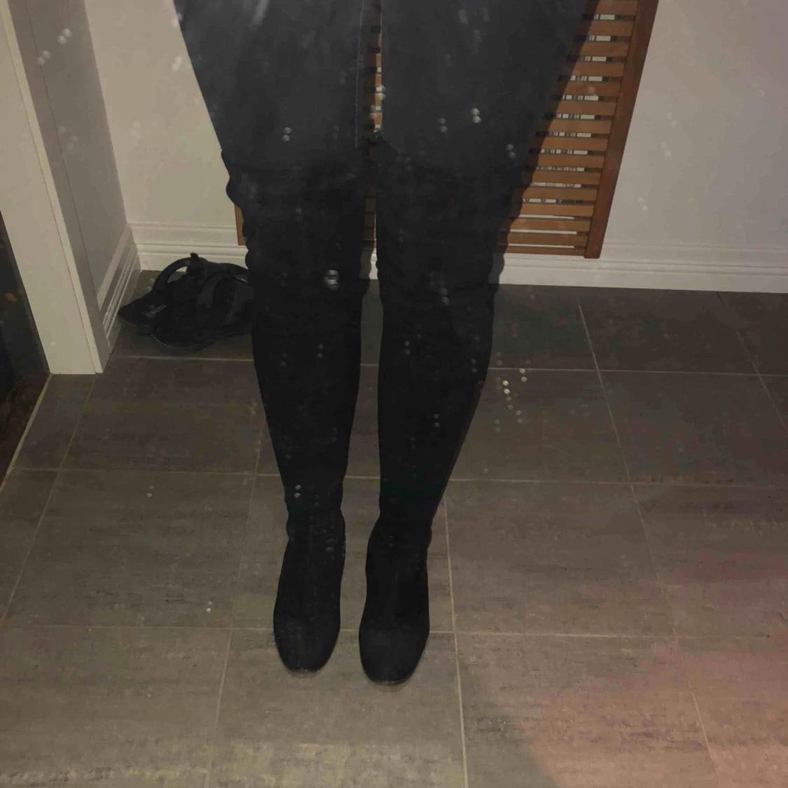 Ett par svarta overknee stövlar ifrån Nelly. Nypris 599 kr. Säljer då de inte längre kommer till användning. Köpare står för frakt.