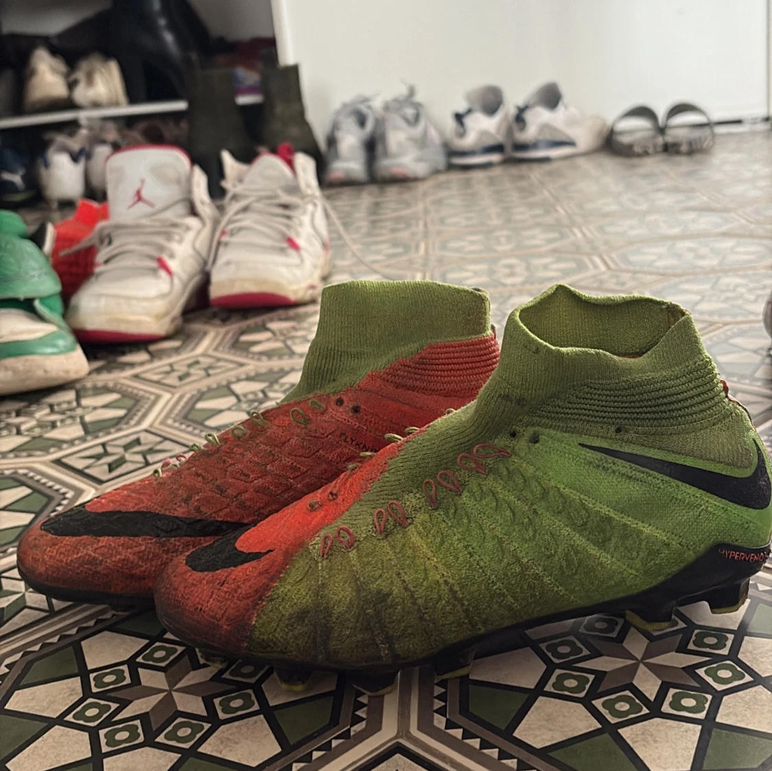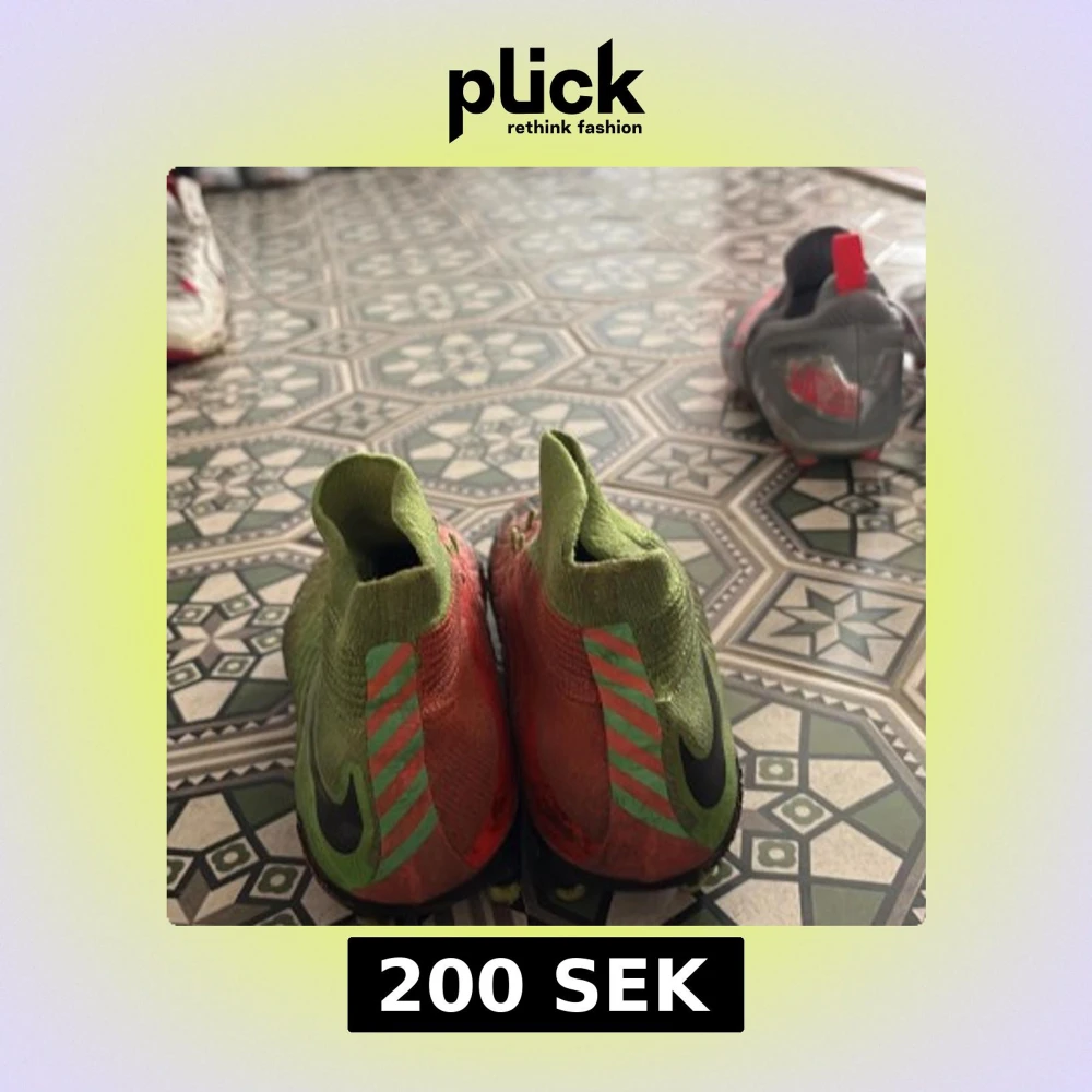 Snygga fotbollsskor från Nike i en cool kombination av grönt och orange. Skorna har en hög ankelkrage för extra stöd och snörning framtill. Perfekta för fotbollsplanen med sin greppvänliga sula.