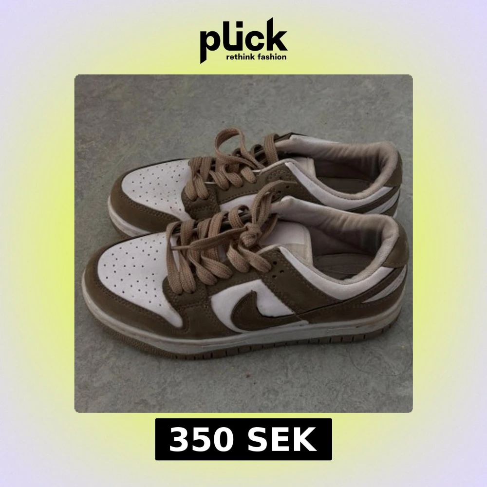 Säljer ett par Nike Dunk sneakers i vitt och olivgrönt. Skorna har klassisk låg modell med perforerad tå, vita paneler och olivgröna detaljer samt matchande snörning. Perfekta för dig som gillar streetwear och vill ha en stilren look.