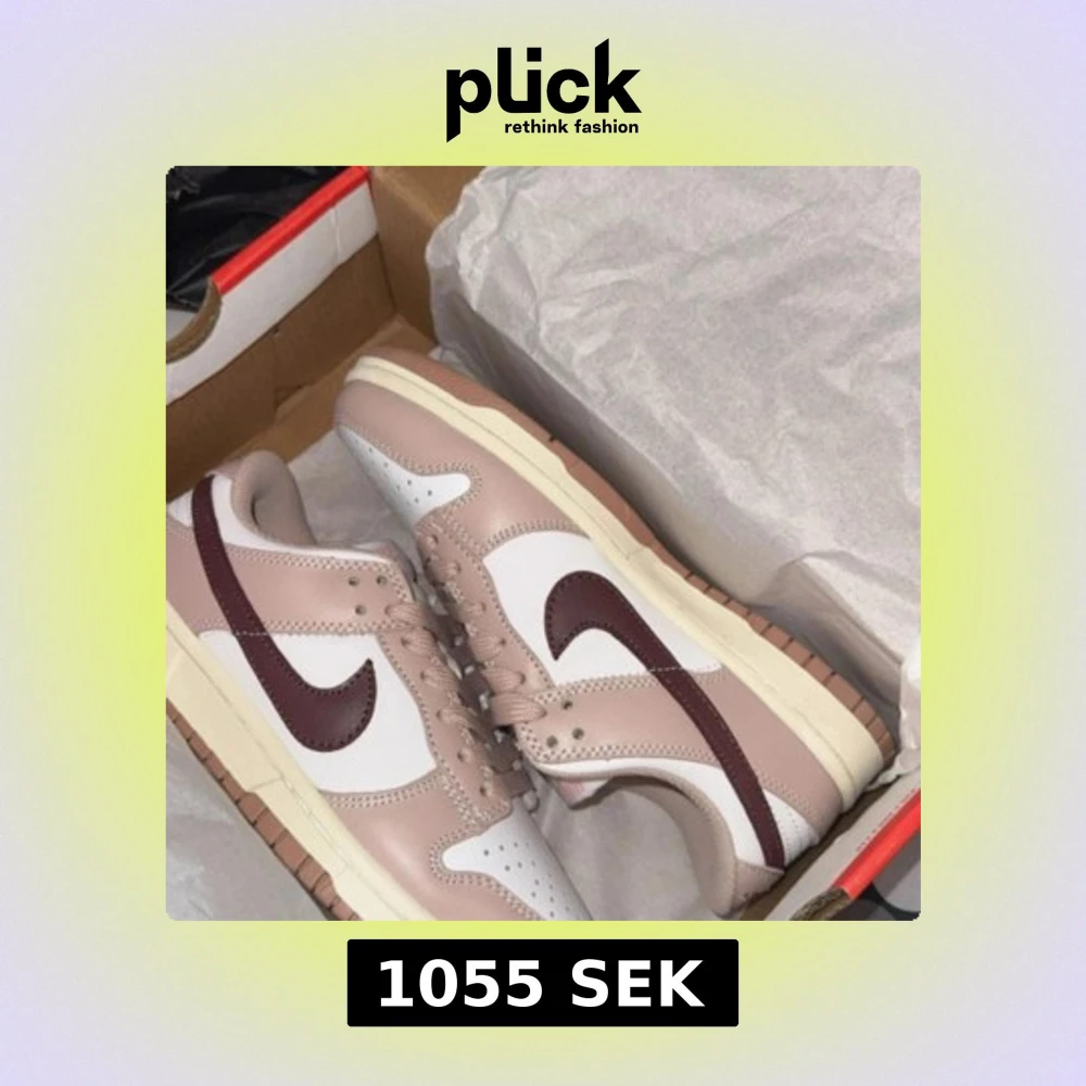 Nike Dunk Low sneakers i beige och vitt med brun swoosh. Låg modell med platt sula och rund tå. Ovandel i skinn med perforerade detaljer på tån och klassisk snörning. Snygg färgkombo som lyfter din outfit och passar perfekt till streetwear.