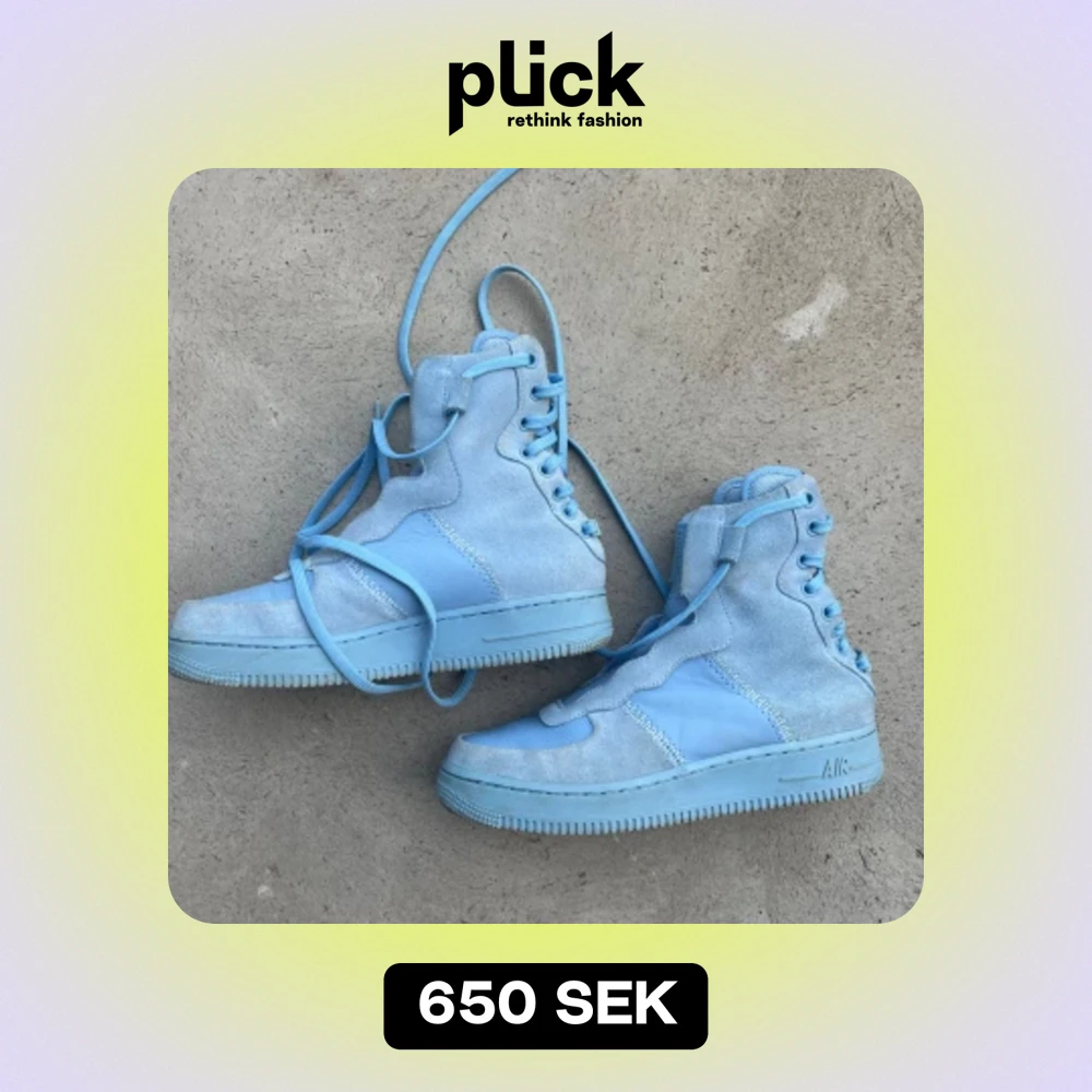En annorlunda version av nike air force 1! Snörena är långa och knyts runt fotleden. Sällan använda (har vissa fläckar men sysn inte vid användning). Mycket cool färg som toppar många outfits😄