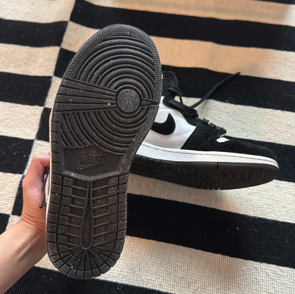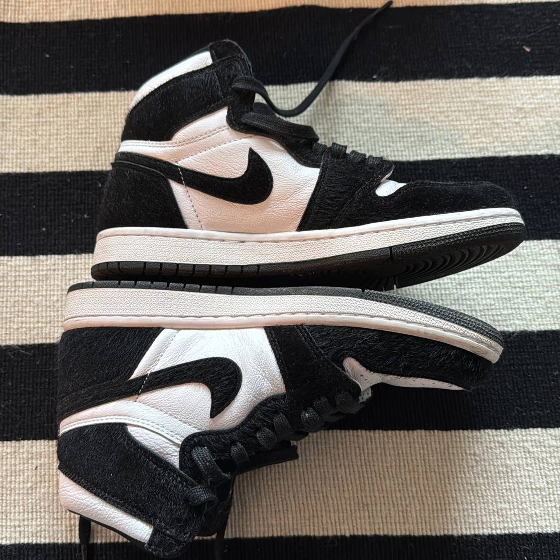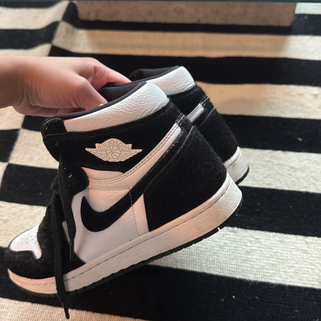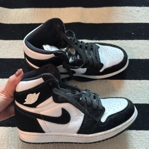 Snygga Nike Air Jordans i klassisk svart och vit färgkombination. Skorna har en hög modell med snörning och den ikoniska Nike-loggan på sidan. Perfekta för dig som vill ha en stilren och sportig look.