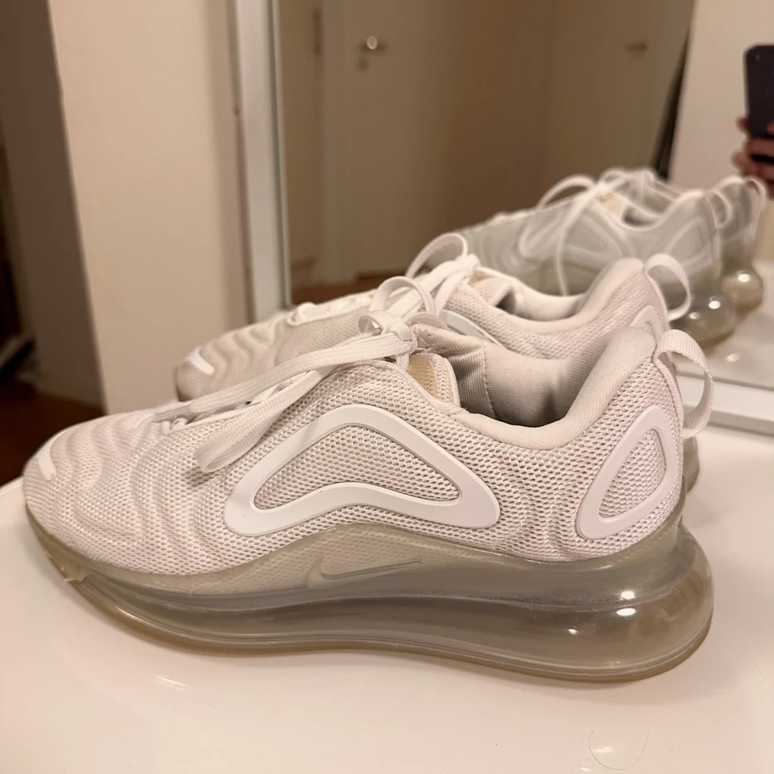 Nike Air Max 720 sneakers i helvitt med futuristisk design och genomskinlig maxdämpad sula. Ovandel i mesh och syntet med snygga vågiga detaljer och snörning. Perfekta för dig som gillar sportig och modern stil.