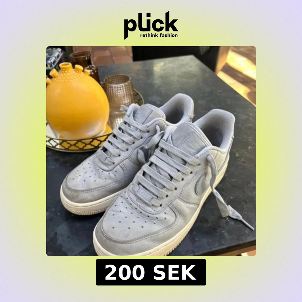 Säljer ett par Nike Air Force 1 i snygg ljusgrå mocka. Jättesköna att gå i, mjuk och skön sula. Storlek 38. Hör av er vid fler frågor!
