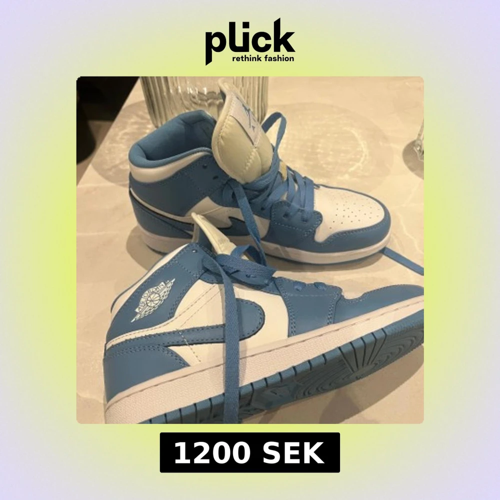 Snygga Nike Air Jordans i en fräsch blå och vit färgkombination. Skorna har klassisk snörning och den ikoniska Air Jordan-loggan på sidan. Perfekta för dig som vill ha en stilren och sportig look. Enda defekten är på andra bilden på skon som står upp pga av att de bara legat i garderoben. Nypris 2500kr tillkommer utan låda då vi var mitt uppe i flytt. Pris kan diskuteras vid snabbt köp.