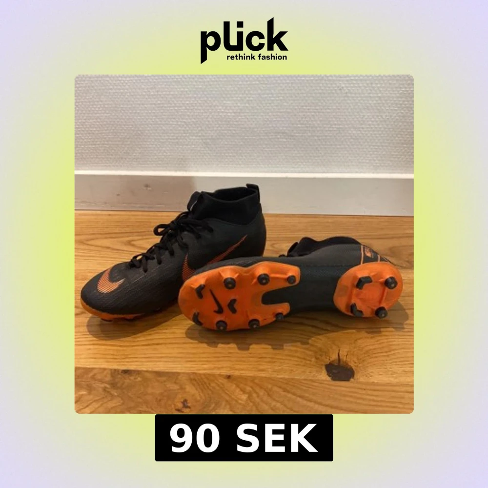 Snygga svarta fotbollsskor från Nike med orange detaljer och snörning. Skorna har en högre ankelkrage för extra stöd.