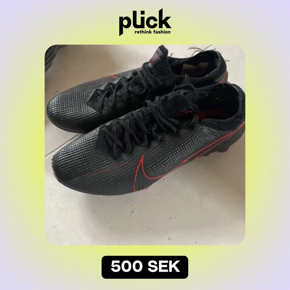 Svarta och röda fotbollskor i storlek 39 Skicket är ganska bra förutom lite skador i hälen. Nypris på skorna är 2800 kr.