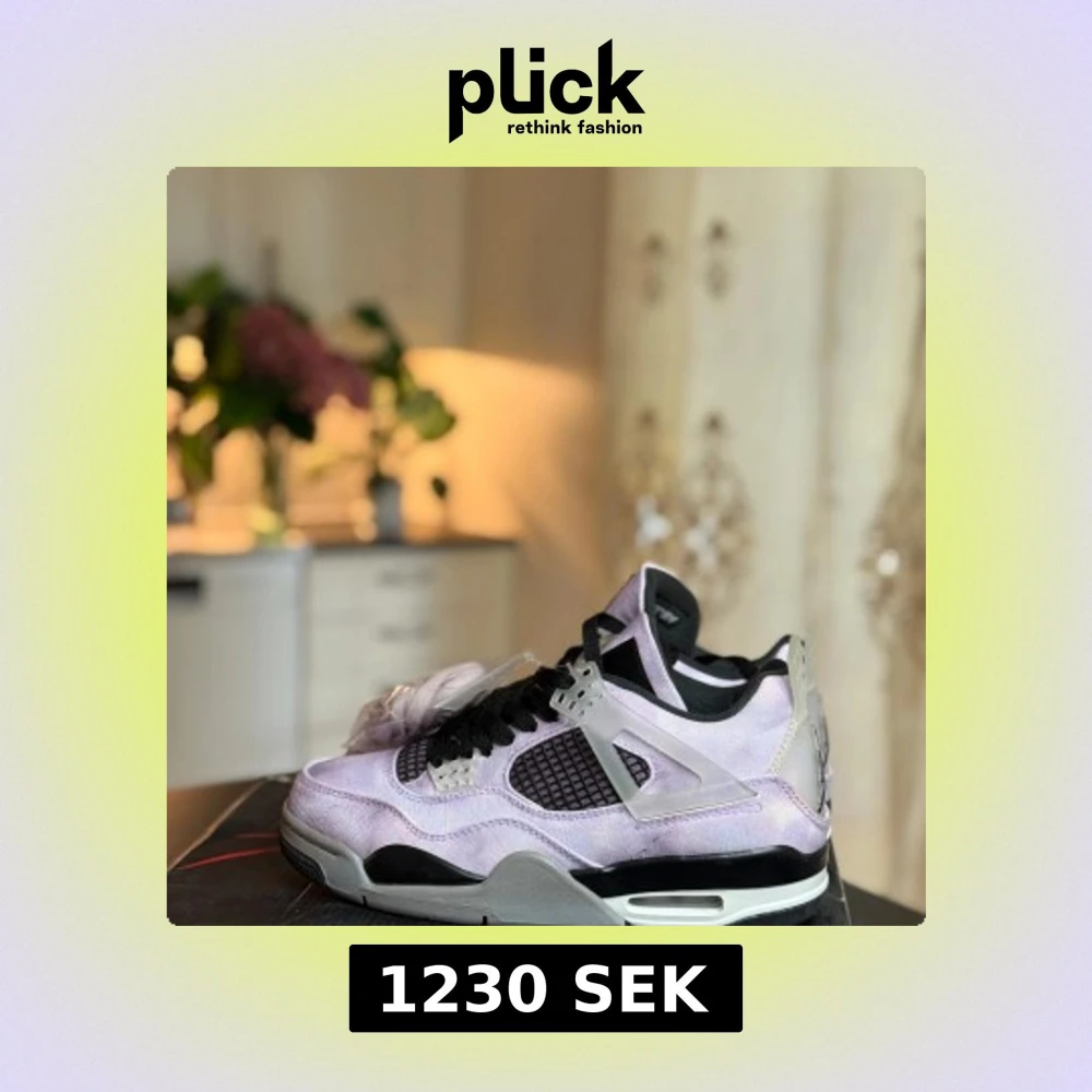 Nike Air Jordan 4 Retro 'Zen Master' med unik lila och grå canvas-överdel, svarta meshpaneler och detaljer i transparent plast. Snygg svart och grå sula med vit midsole och klassisk Jumpman-logga på hälen. Perfekt för dig som vill sticka ut med dina sneakers.