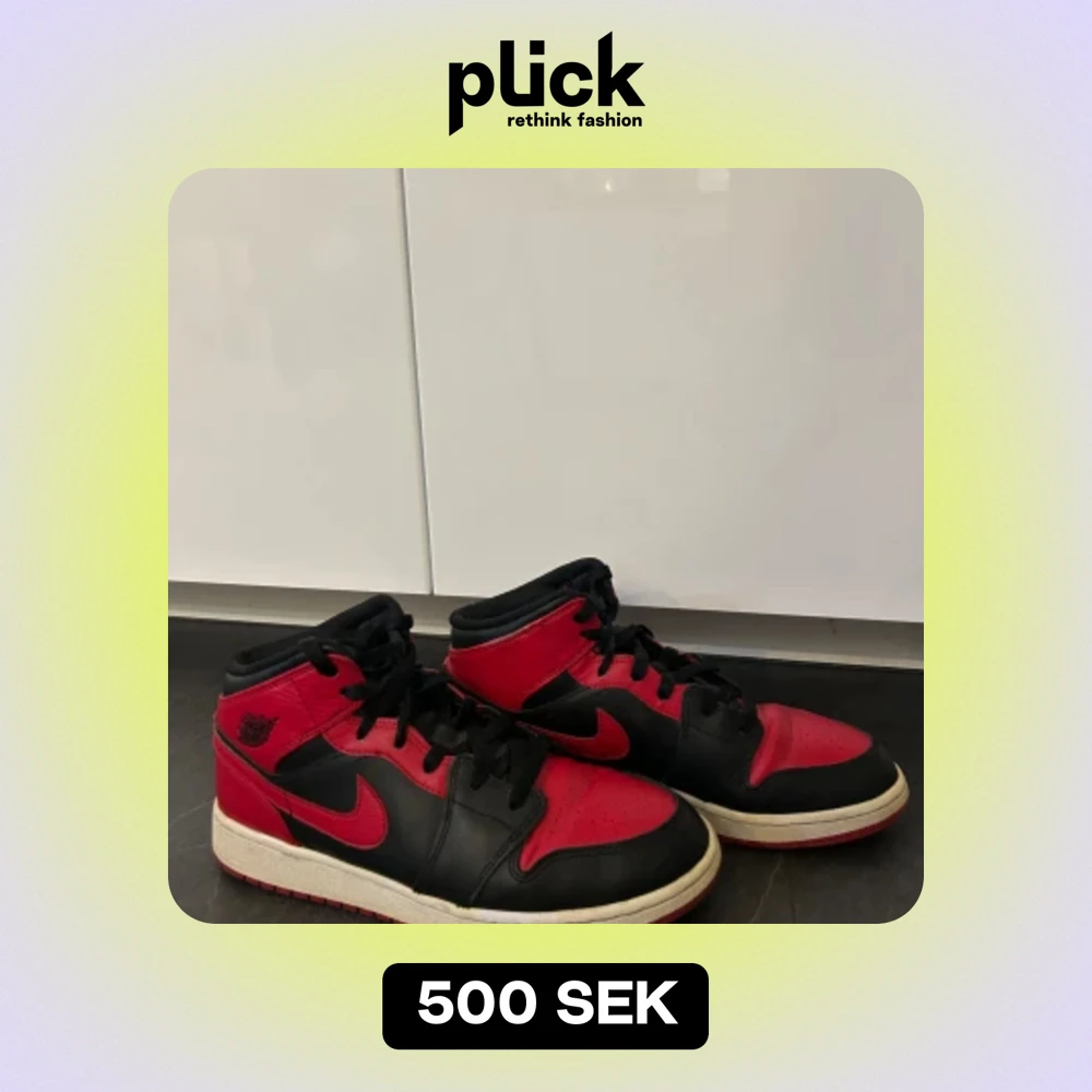 Nike Air Jordan 1 Mid ”Banned” Storlek 40 Använt i gott skick Undersidan av skon är lite sliten Hämtas upp i Bandhagen