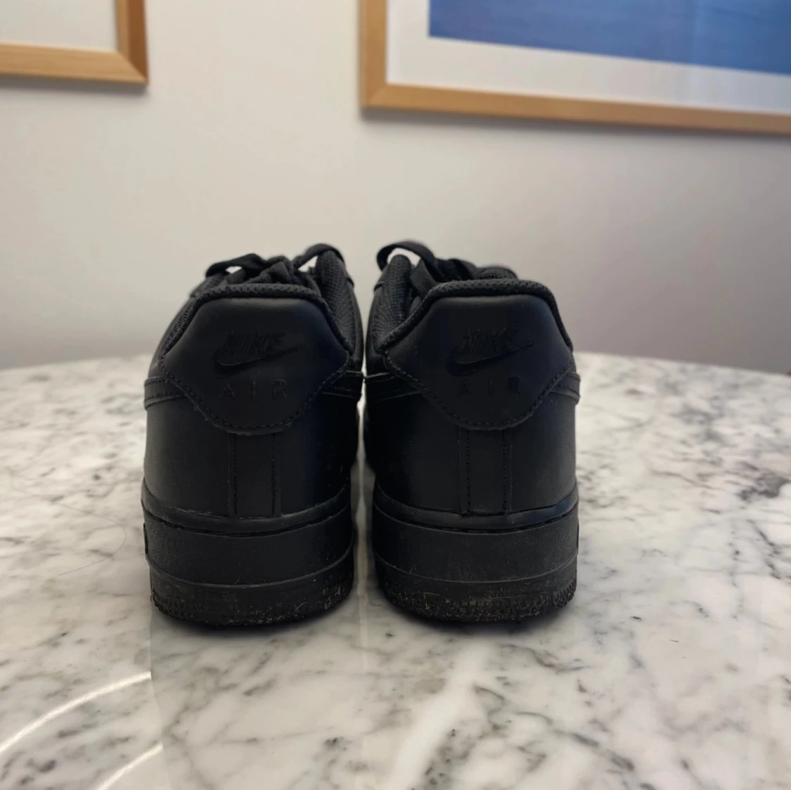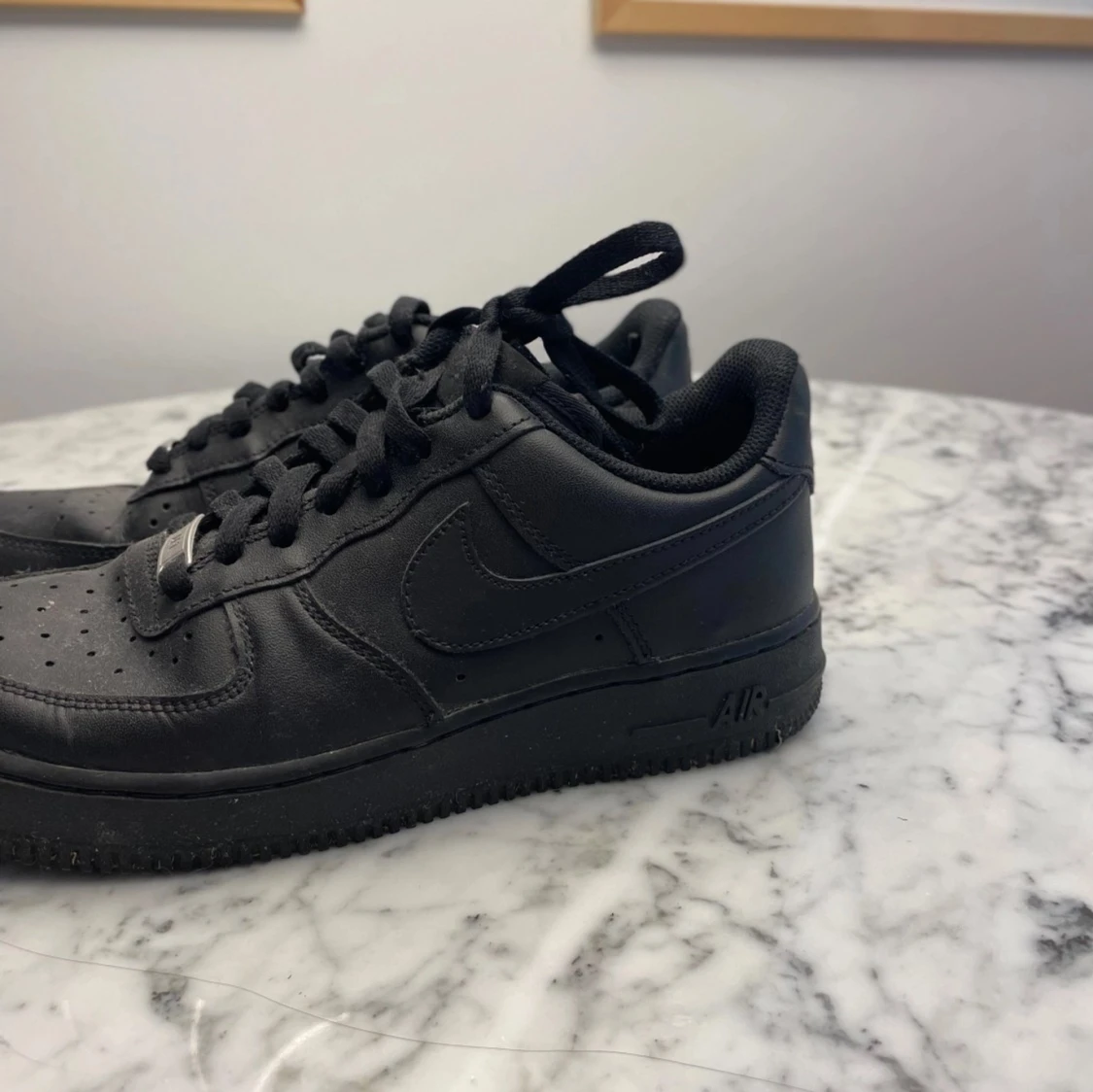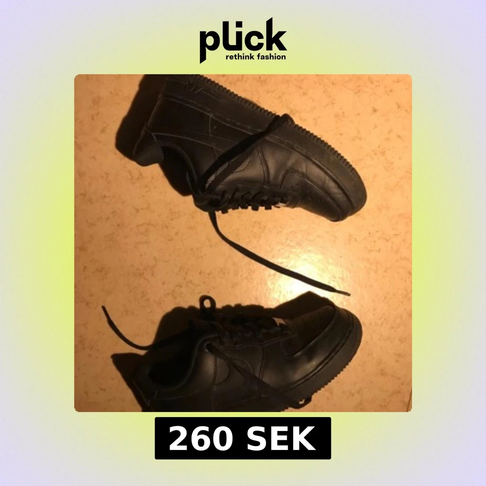 Snygga svarta Nike Air Force sneakers i skinn med klassisk design och snörning. Perfekta för en stilren look. De har en robust sula och ikonisk Nike-logga på sidan. Nästan aldrig använd och inga defekter. Priset kan jag diskutera