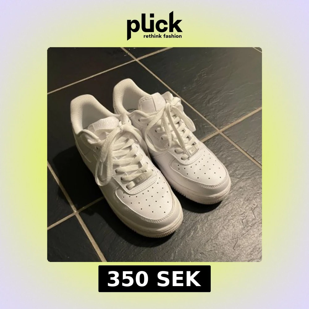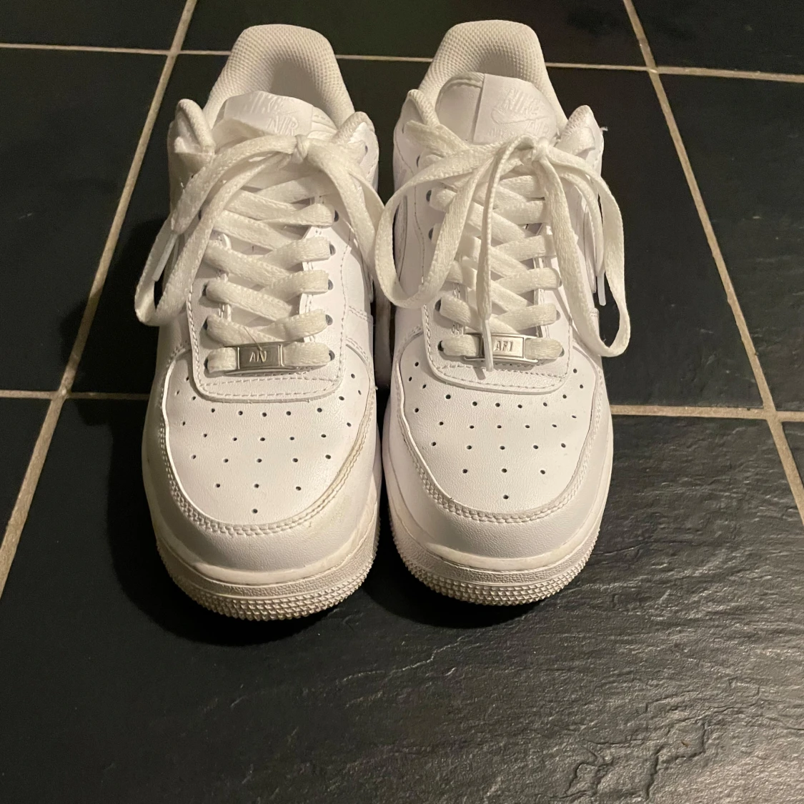 Snygga och klassiska vita Nike Air Force sneakers med snörning. Perfekta för en stilren look och bekväma att bära hela dagen.