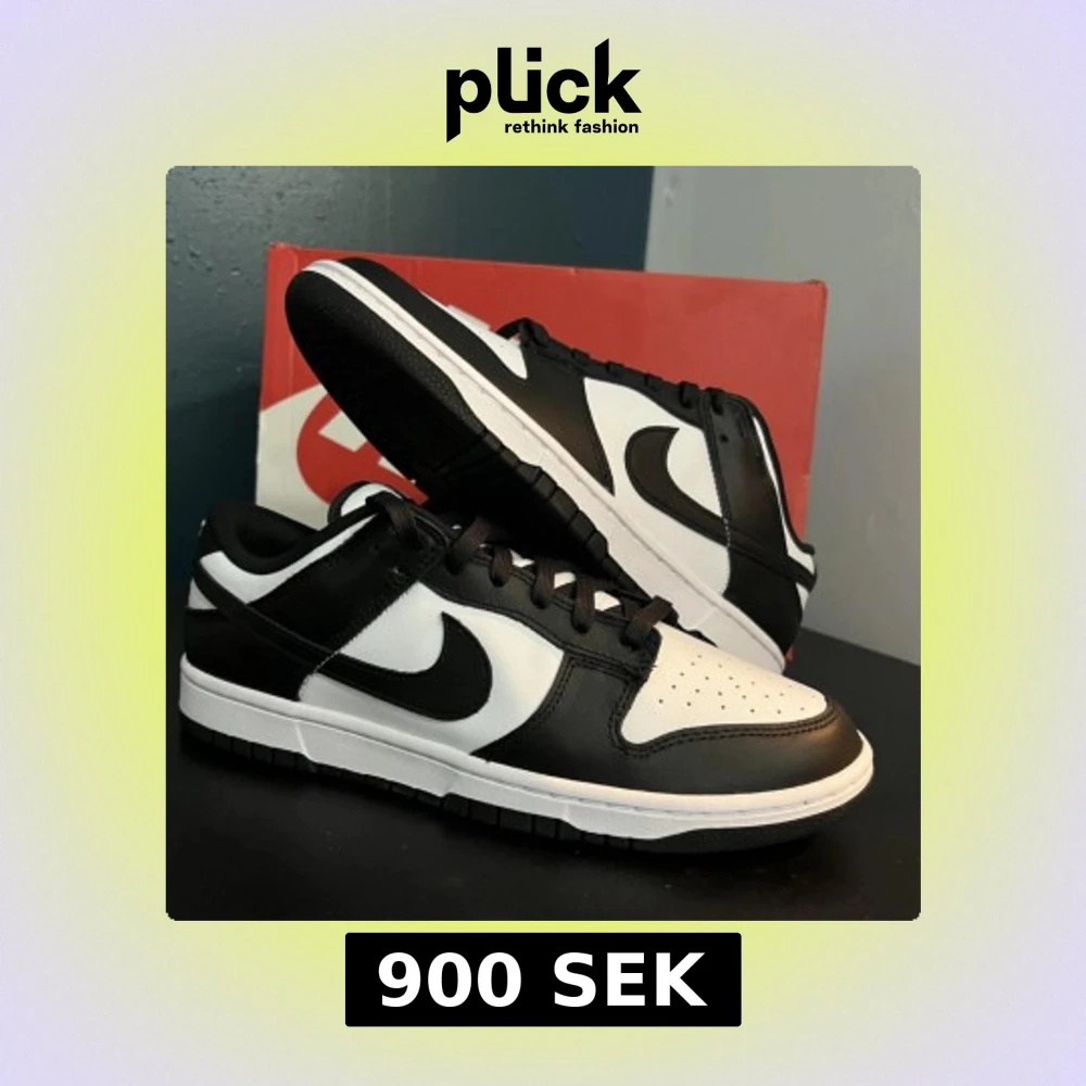 Snygga Nike Dunk Low sneakers i svart och vitt skinn med klassisk Swoosh-logga på sidorna. Lågt skaft, svart snörning och vit mellansula ger en clean och tidlös look. Perfekta för dig som gillar streetstyle och vill sticka ut med en ikonisk modell.