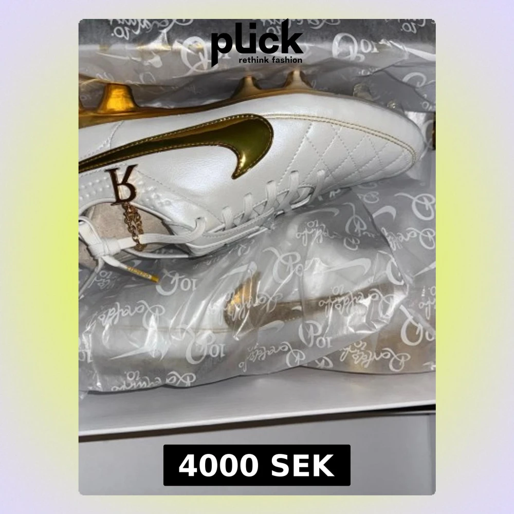 Exklusiva Nike Ronaldinho 10R fotbollsskor i vitt skinn med guldfärgade detaljer och sula. Snyggt quiltad ovandel, guldfärgad Nike-swoosh och Ronaldinho 10R-logga. Skorna har snörning och platt sula med dobbar för gräsplan. Perfekt för dig som vill sticka ut på planen.